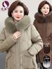Casaco acolchoado de inverno para mães de meia-idade e idosas, jaqueta de penas de pato branco 2024, nova jaqueta longa acolchoada de algodão estilo ocidental para mulheres de meia-idade