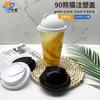 Capa de injeção descartável de 90 desenhos animados Panda Capa de arco Capa semi-redonda Copo de chá de leite Suco espessado Tampa de injeção PP à prova de vazamento