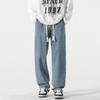 Calças casuais estilo americano retrô cor sólida all-match masculinas modernas all-match com cordão solto perna reta perna larga jeans para homens