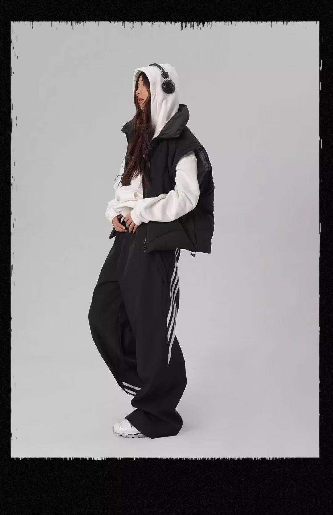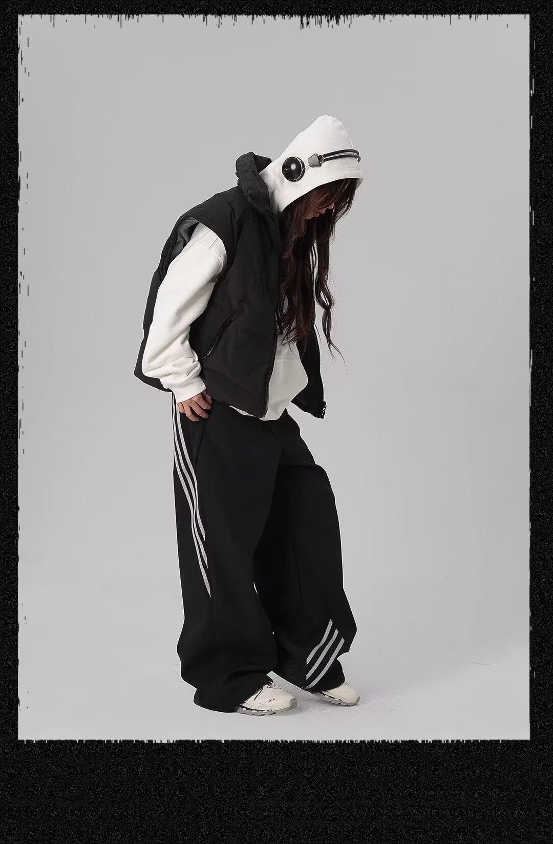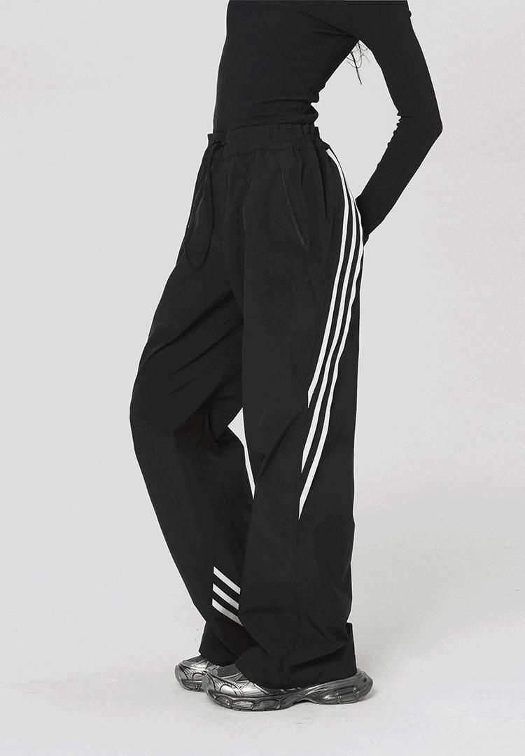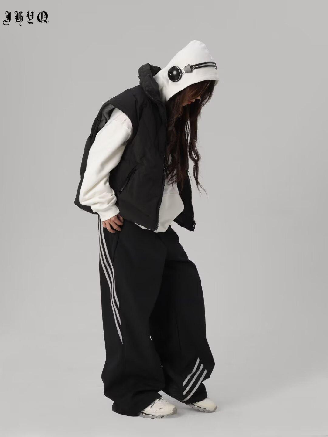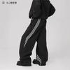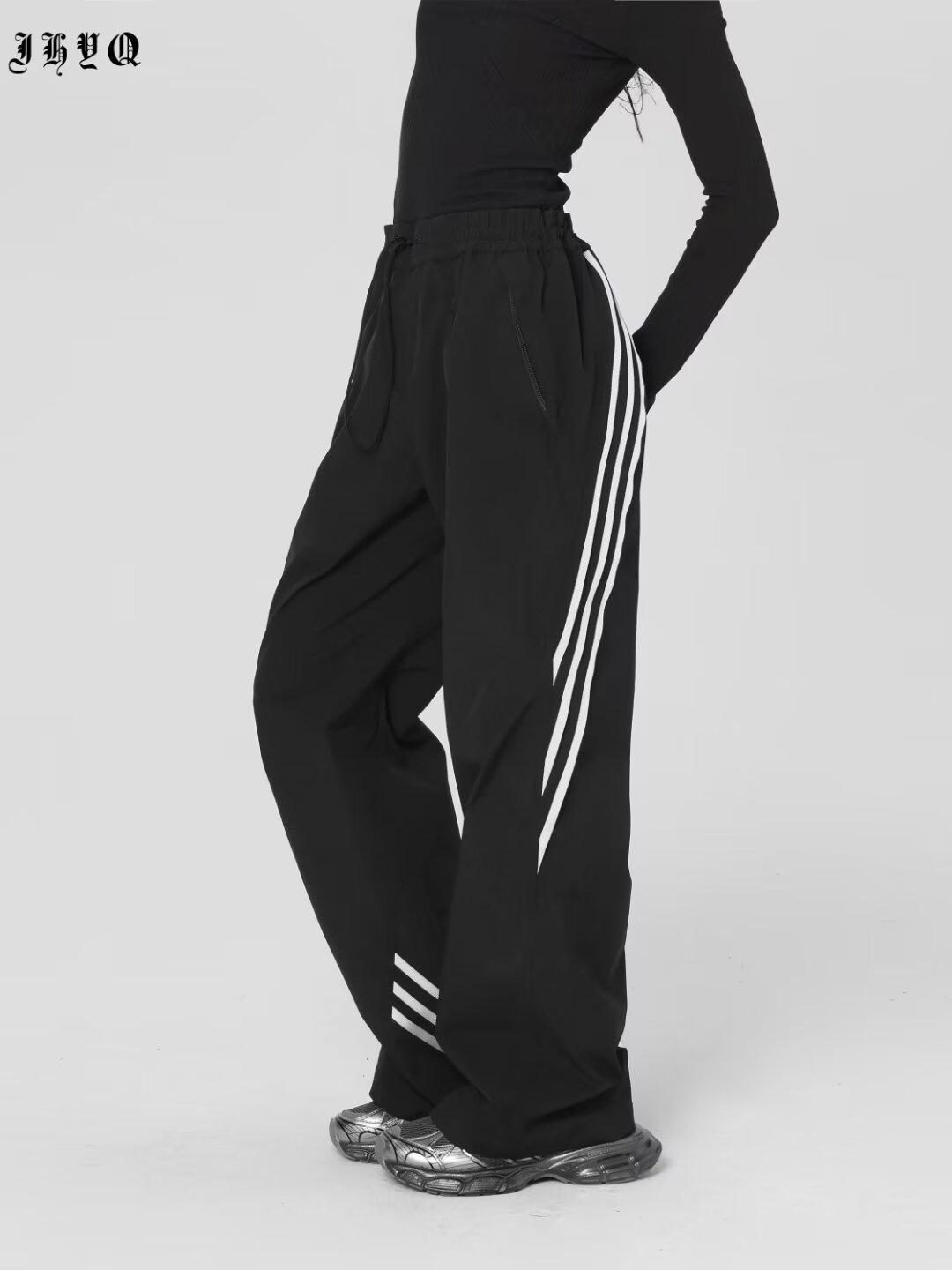Calças esportivas americanas retrô femininas primavera e outono 2024 novas calças casuais retas de perna larga calças de moletom listradas laterais soltas