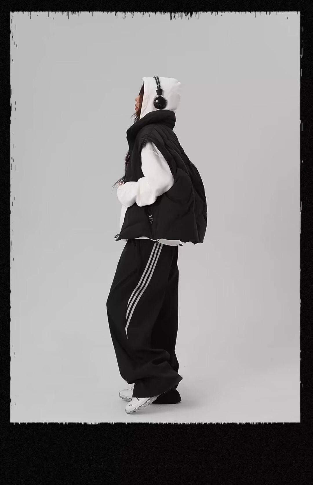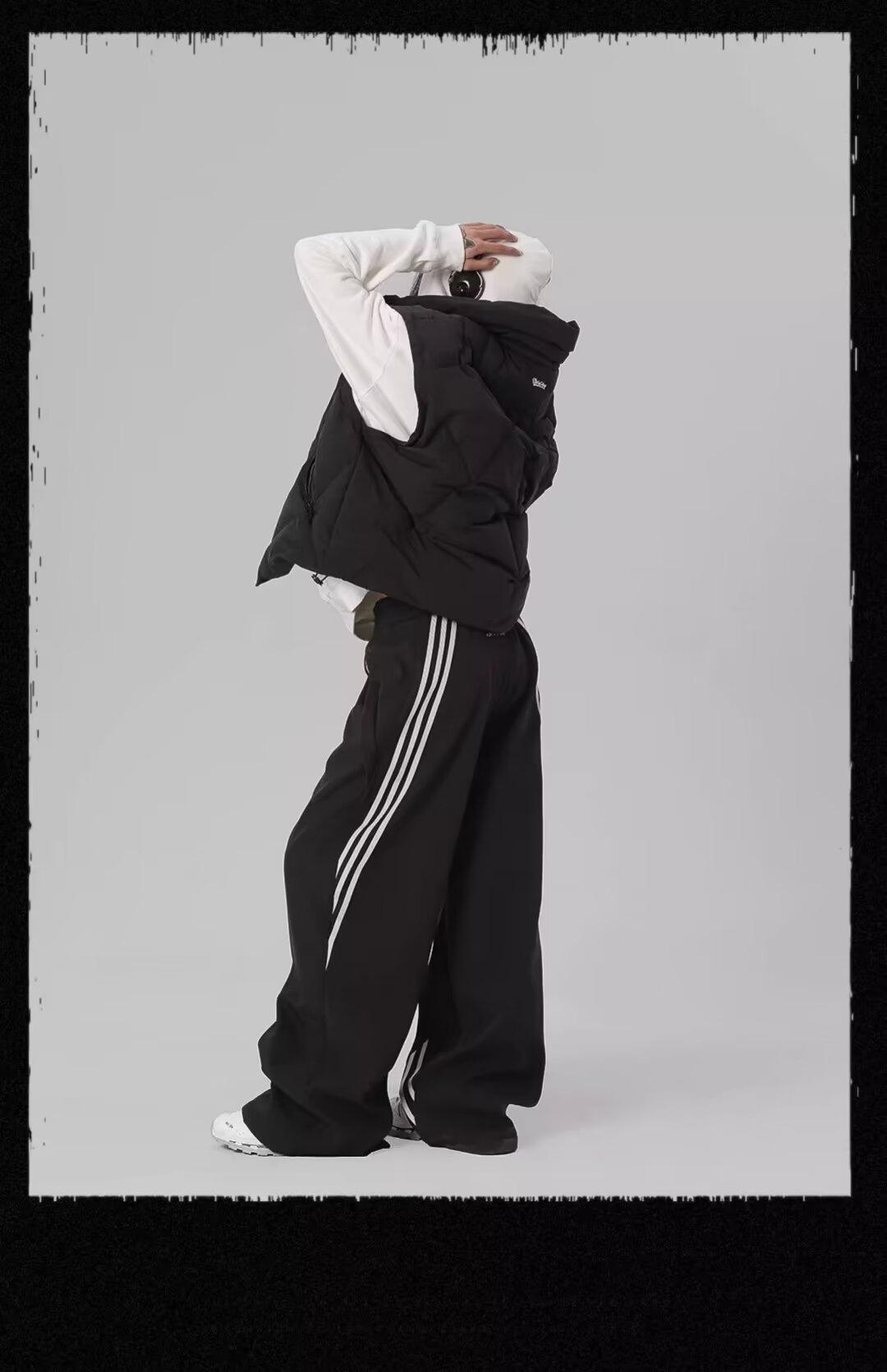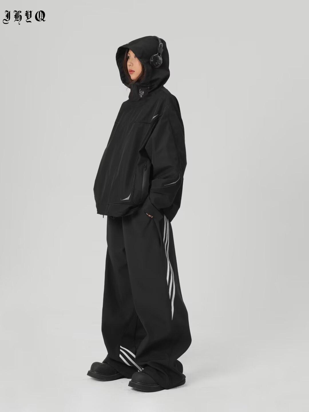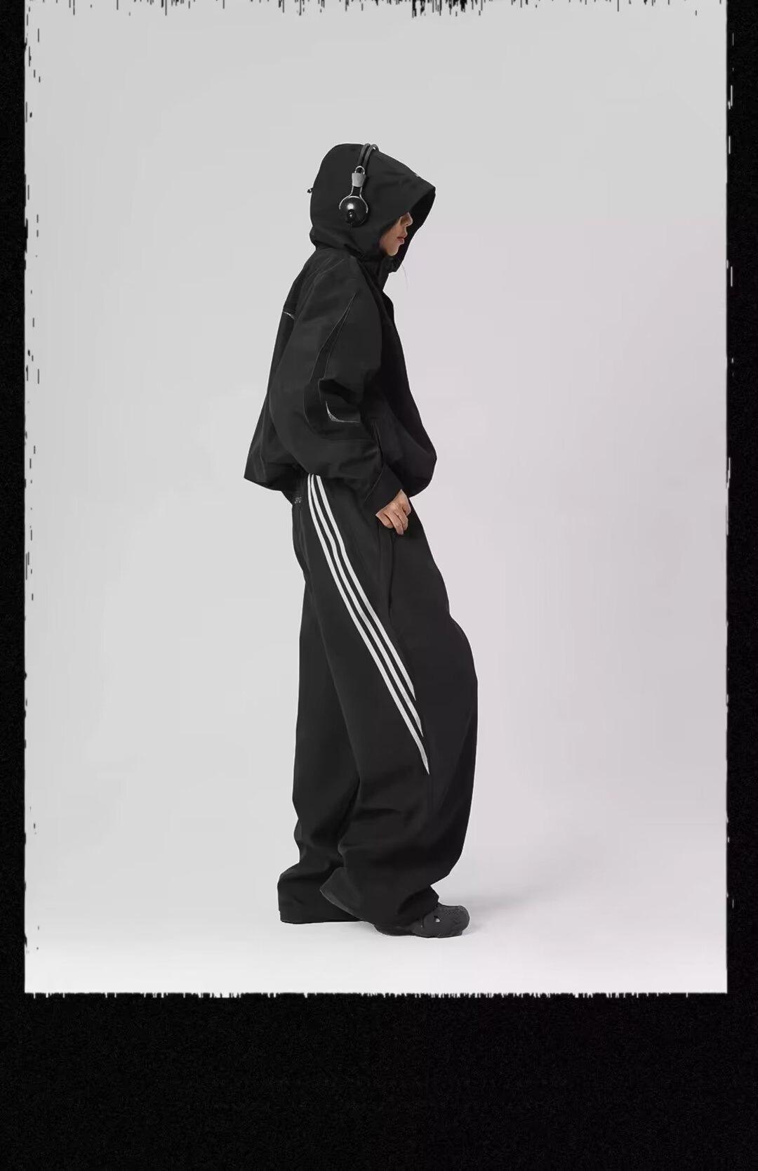 Calças esportivas americanas retrô femininas primavera e outono 2024 novas calças casuais retas de perna larga calças de moletom listradas laterais soltas