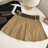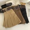 Saia plissada de cintura alta feminina com cinto 2023 verão novo estilo coreano versátil anti-exposição saia cáqui