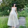 Foto Real de Vestido de Fada com Broche Floral 2026 Primavera/Verão Vestido Branco de Alça Fina Férias na Praia Vestido Longo