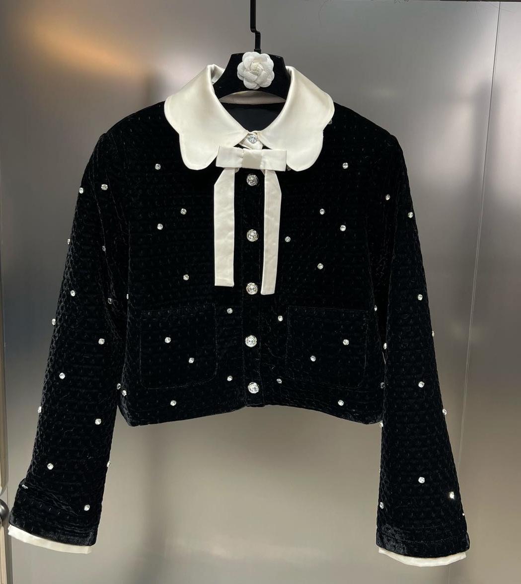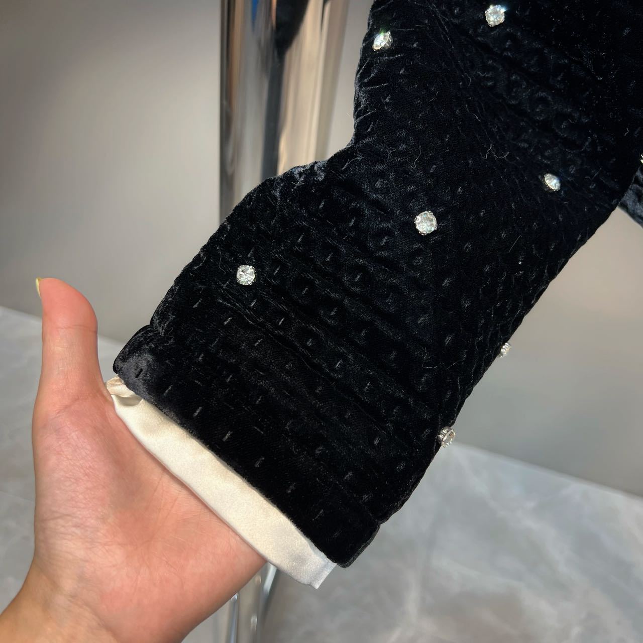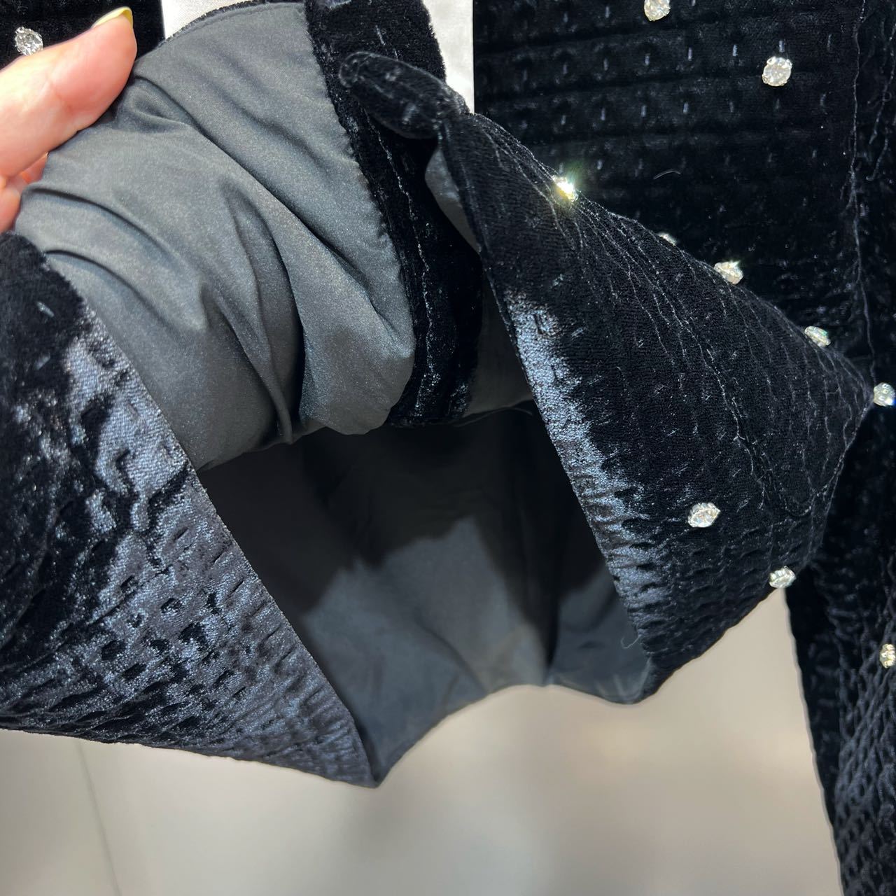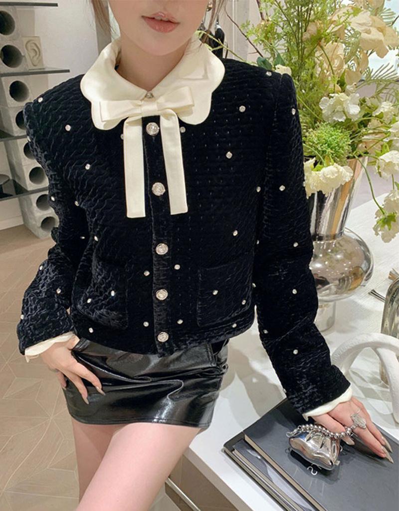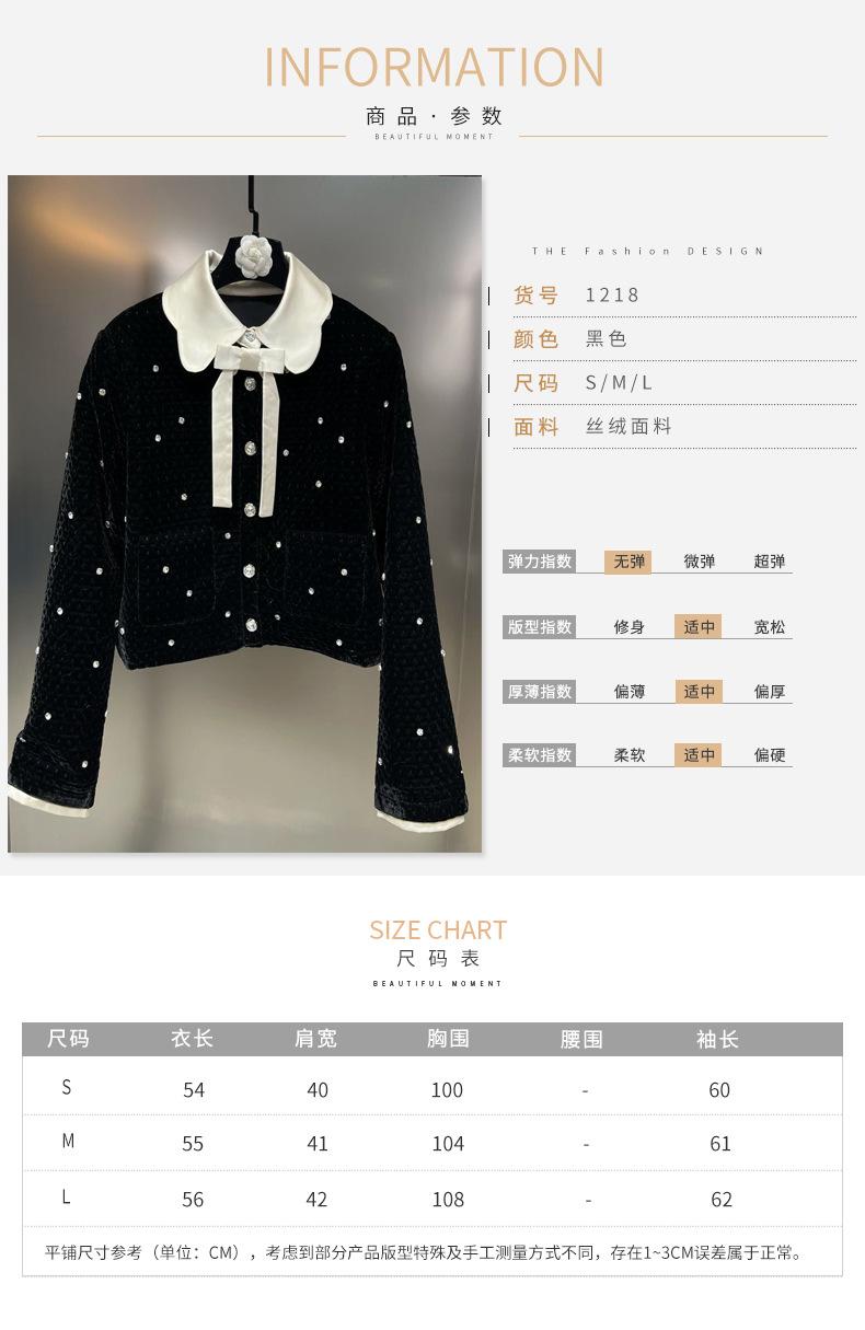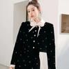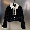 Outono e Inverno Socialite Pequeno Perfume Veludo Preto Casaco Curto Feminino Street Indústria Pesada Top Pequeno Diamante Quente 1218