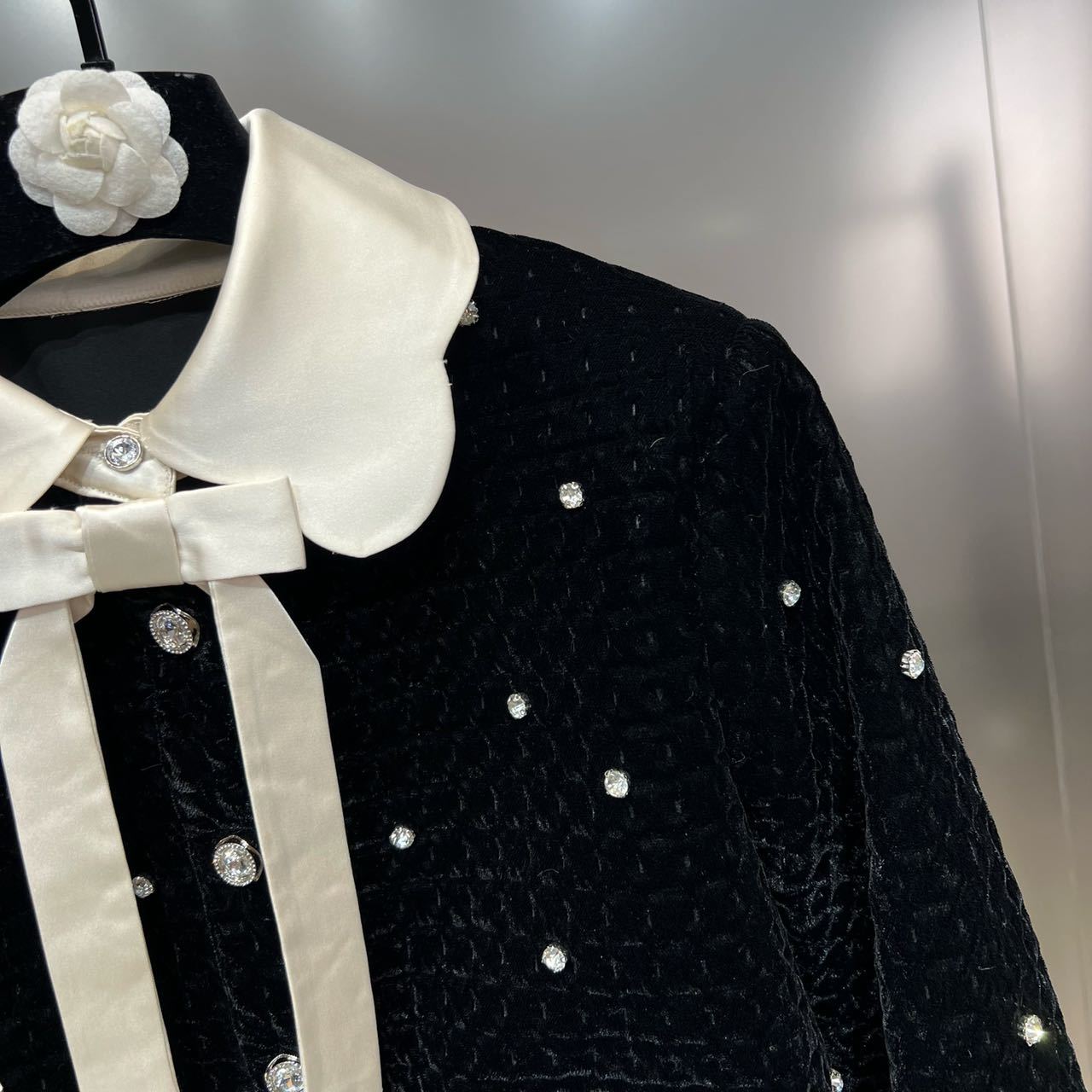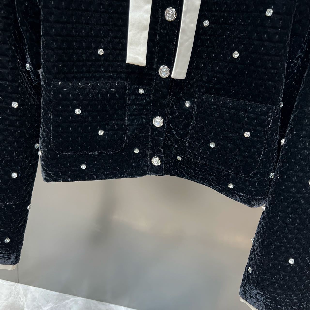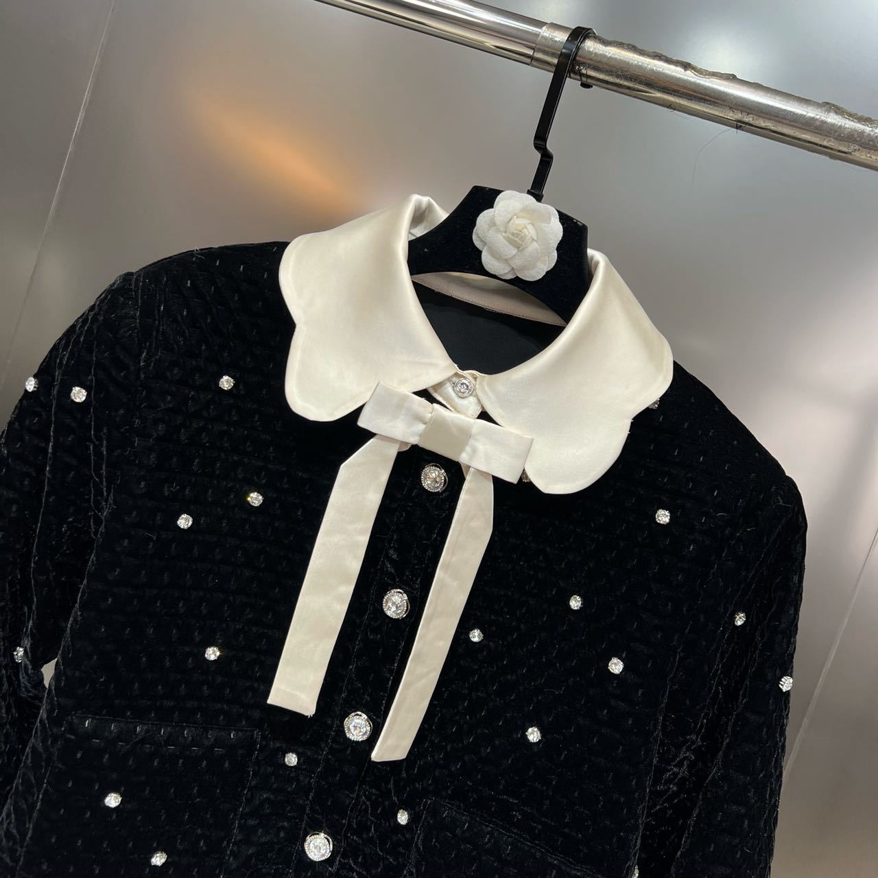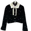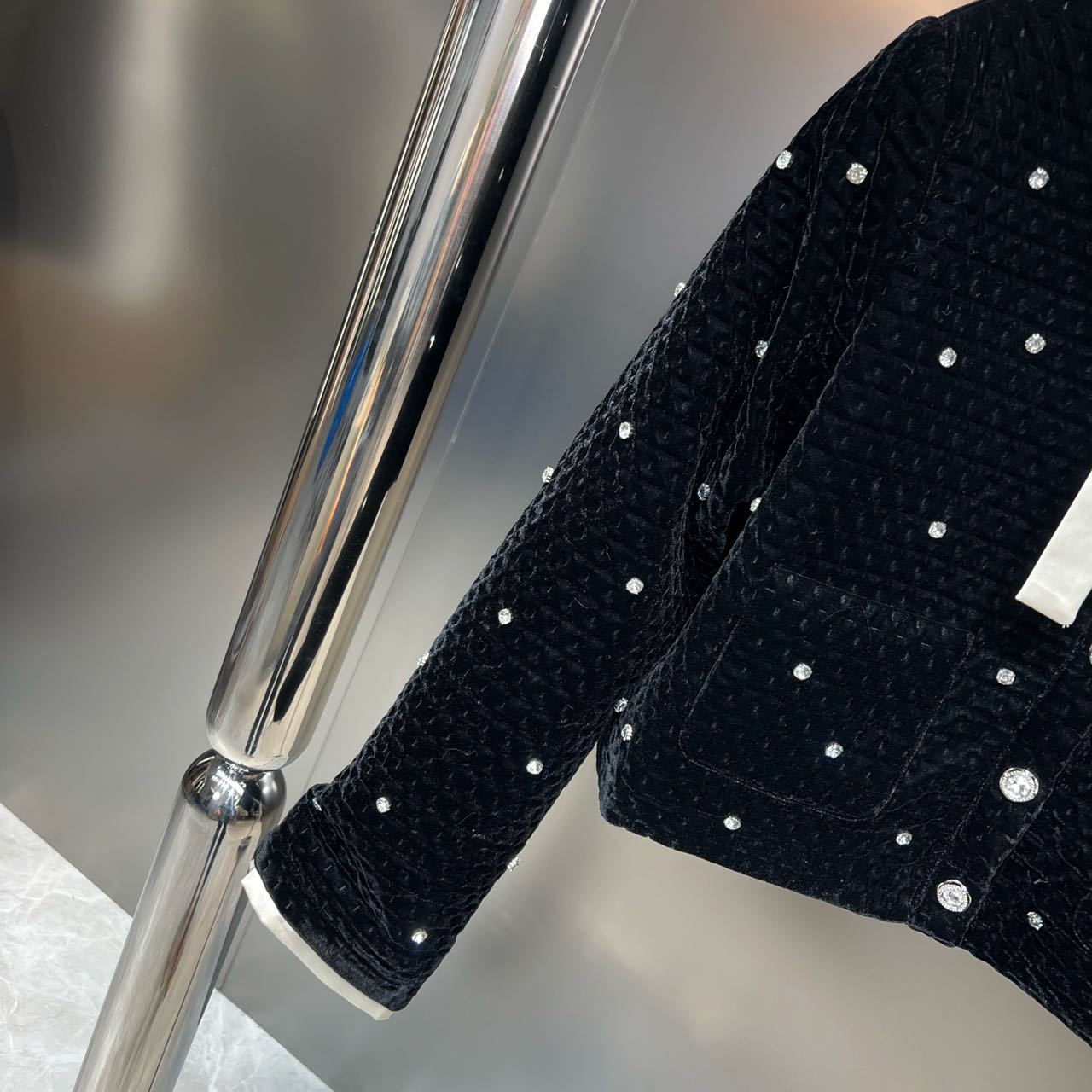 Outono e Inverno Socialite Pequeno Perfume Veludo Preto Casaco Curto Feminino Street Indústria Pesada Top Pequeno Diamante Quente 1218