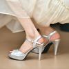 2024 Novas Sandálias da Moda Feminina Fivela de Uma Palavra com Fivela Sapatos Elegantes de Biqueira de Peixe Plataforma Impermeável Sapatos de Salto Alto de Fada