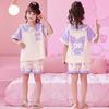 Pijamas infantis meninas primavera e outono fino estilo ocidental meninas penteado algodão super fofo desenho animado roupa de casa terno