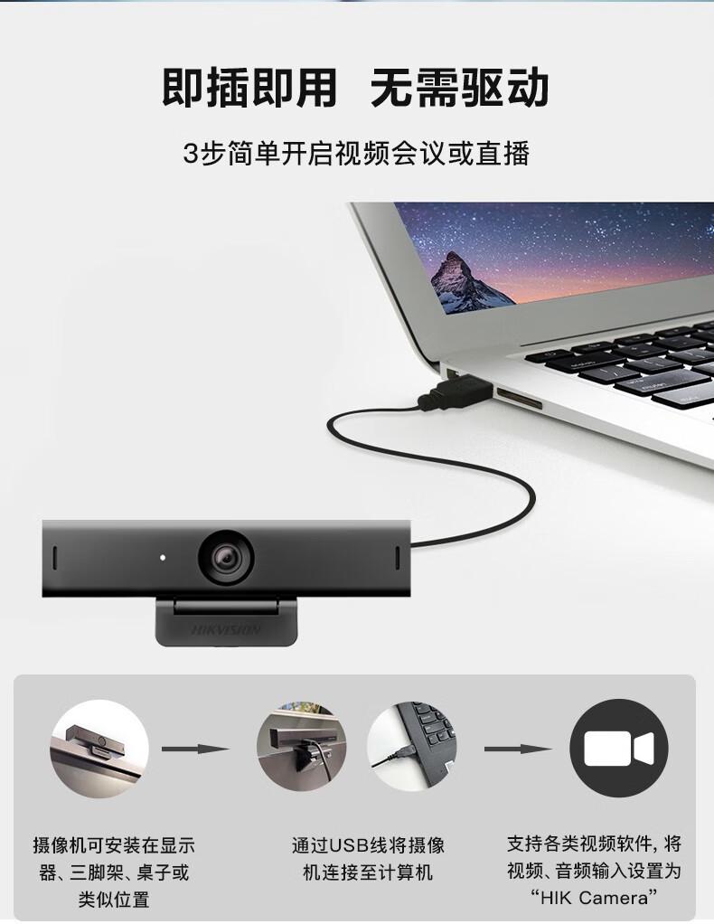 Câmera Hikvision Computer Live, unidade USB, sem unidade, HD, câmera de videoconferência para aulas on-line, Mike integrado