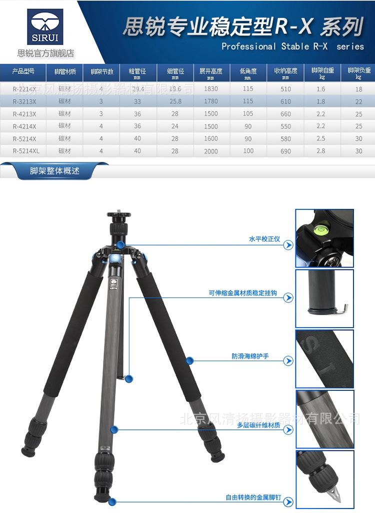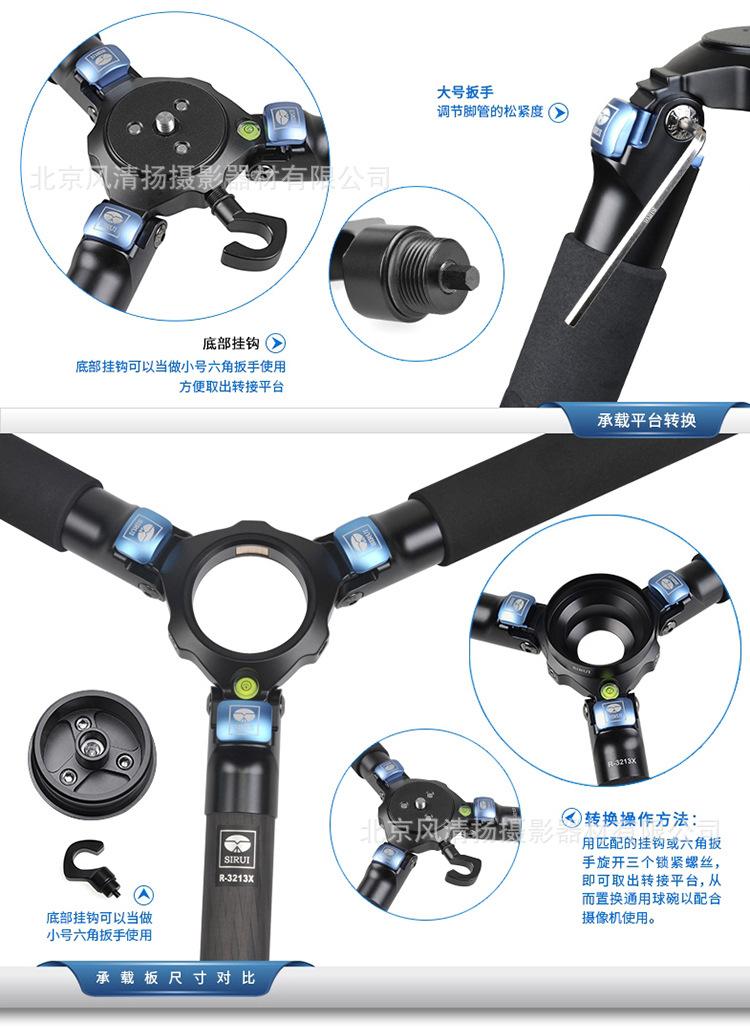 Tripé SIRUI R-3213X Câmera SLR Tripé de fibra de carbono estável Fotografia