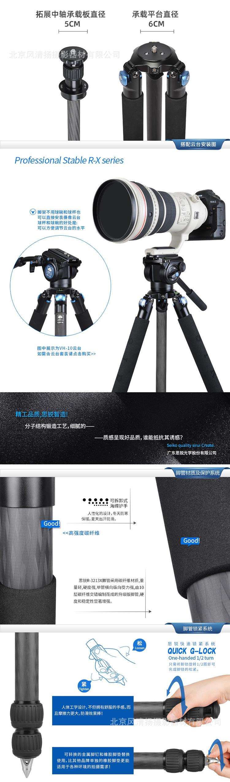 R-3213X Monopod, R-3213X + VH-10 hydraulic head, R-3213X + PH-10 Cantilever Yuntai Bird Watching