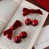 Grampo de cabelo de veludo com laço vermelho cereja de ano novo, grampo de franja meio-amarrado, grampo de cabelo quebrado, grampo lateral, grampo de bico de pato, cocar