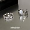 Anel de Pedra da Lua de Duas Peças Anel Aberto de Strass Feminino Design de Nicho Anel Liso Anel de Dedo Anel de Autodisciplina Francês