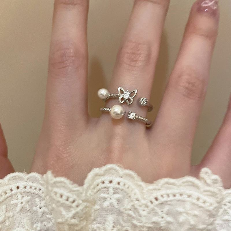 Butterfly Pearl Opening Ring, Pearl Opening Ring, two-piece set]