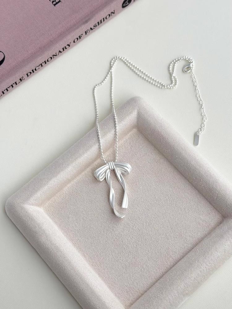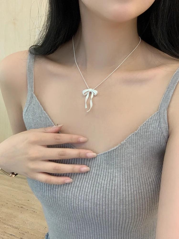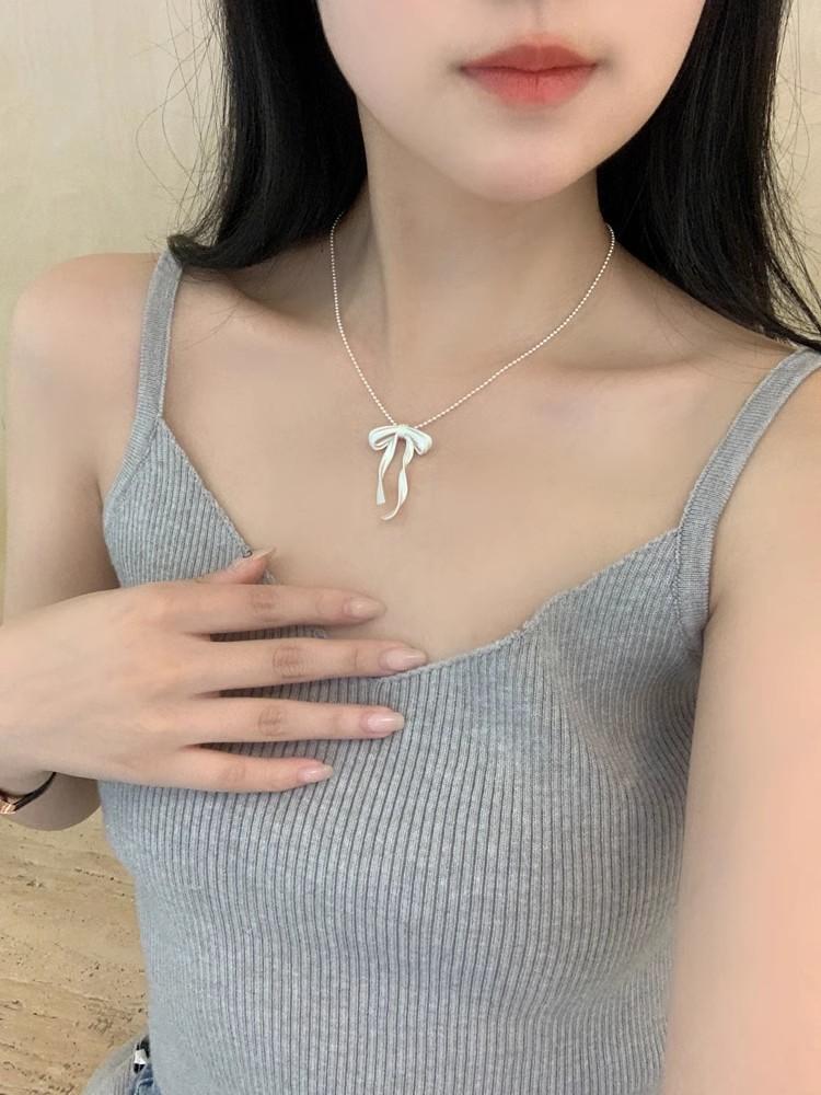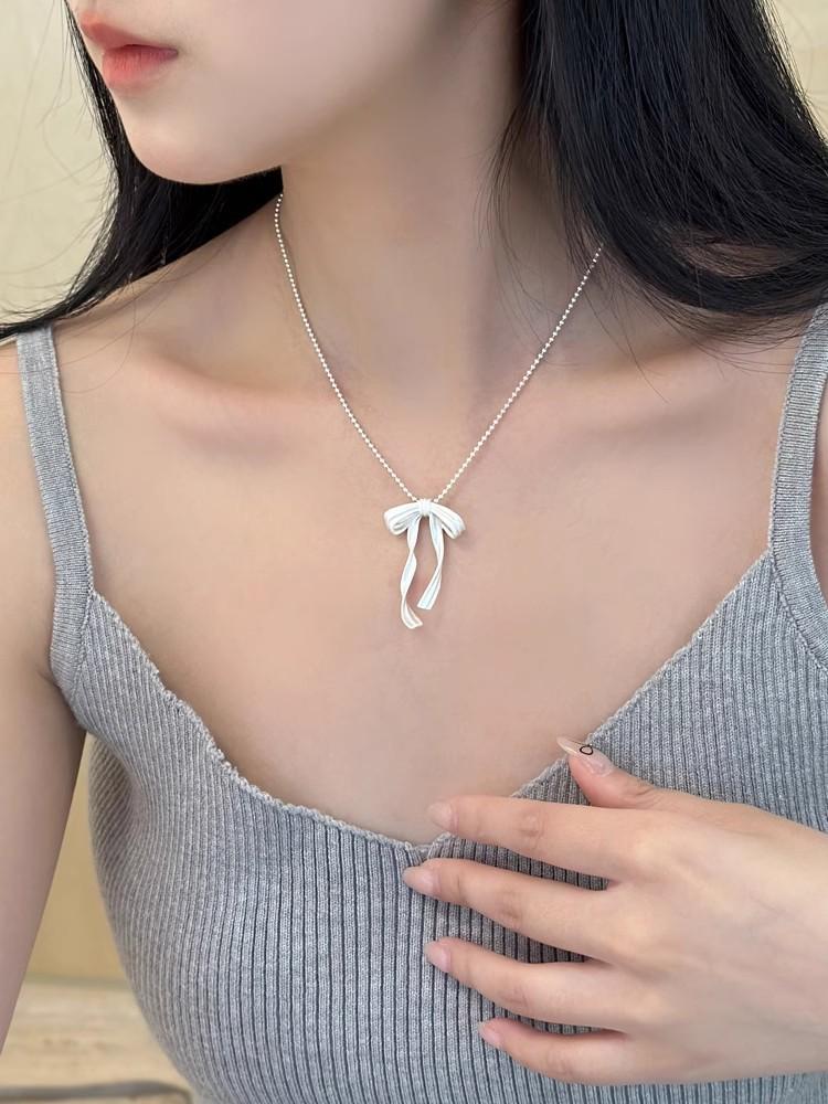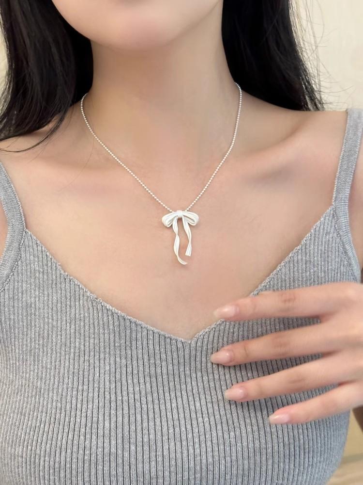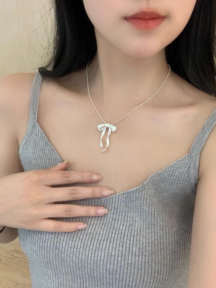 Colar de laço de prata de luxo leve e de alta qualidade com pingente de corrente de clavícula de verão 2024 Nova corrente de clavícula combinada