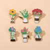 Broche de desenho animado flor xícara de café rosa tulipa girassol bolsa escolar fofa tinta decorativa emblema de liga
