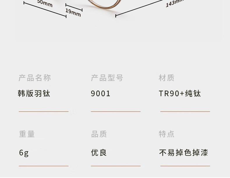 Armação de óculos feminina ultraleve, redonda, lisa, titânio puro, 9001, livro vermelho, karin, mesmo estilo, armação, danyang, óculos de miopia para mulheres