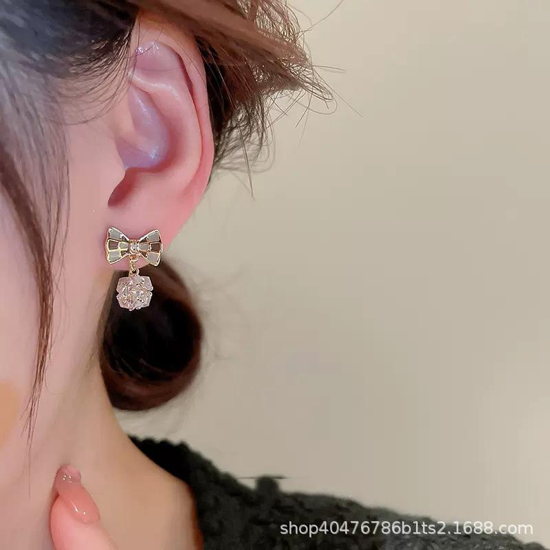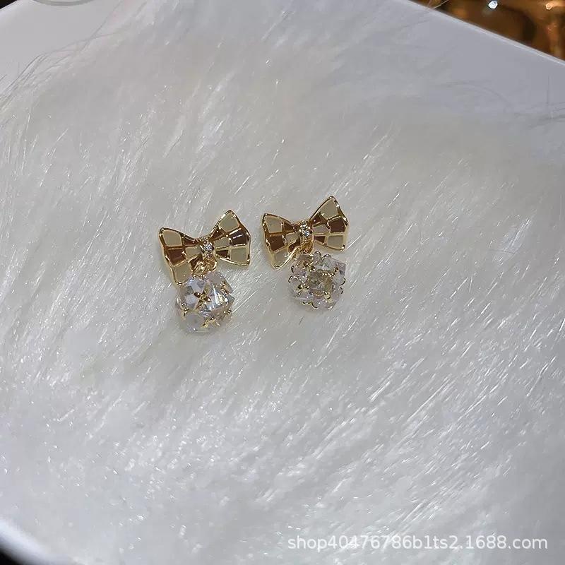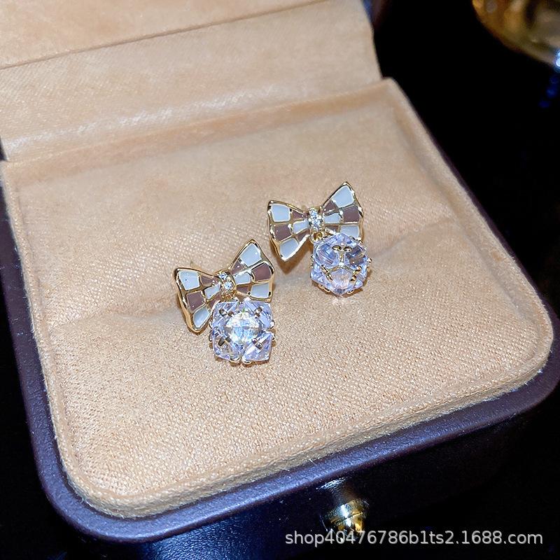 Brincos de arco xadrez com design elegante e microincrustado, brincos de bola de zircônia, brincos de estilo doce, joias para orelha