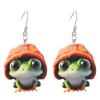 Brincos de sapo de cor fofa de personalidade transfronteiriça europeia e americana, mulheres usando chapéu, brincos de sapo de árvore, brincos de acrílico, joias