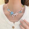 Creme azul arco frisado colar doce personalidade design simples clavícula cadeia pequena moda fresca temperamento colar