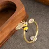 Moda Estilo Coreano Criativo Esmalte Gotejado Anel de Abelha Fofo Incrustado de Diamantes Feminino Luxo Leve High-end Cor Livre Anel Vivo