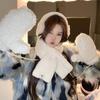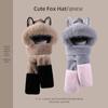 Contraste Cor Fogo Raposa Chapéu Cachecol Luvas Cachecol de Inverno Feminino Bonito Chapéu Quente Pelúcia Conjunto de Três Peças