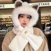Chapéu de Orelhas de Raposa Cachecol de Uma Peça Chapéu para Mulheres Inverno Peludo Fofo Animal Plus Conjunto de Cachecol de Duas Peças