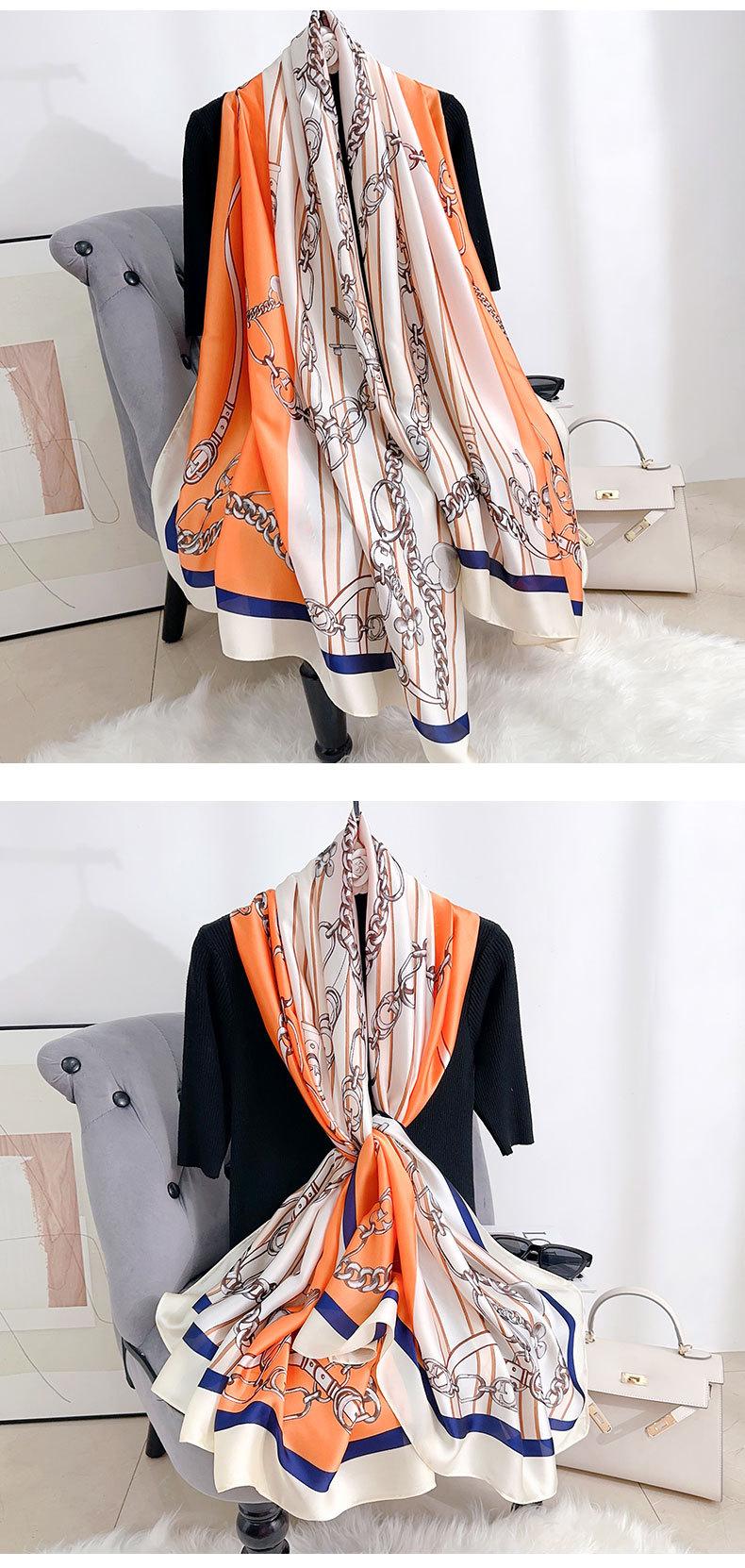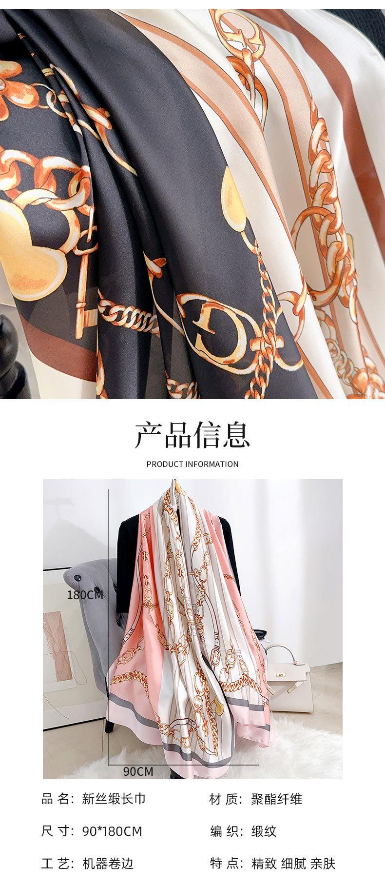 Presente de luxo leve e moderno para o dia das mães em estilo ocidental e moderno, estilo japonês e coreano, elegante, estampado, xale, novo, seda, cetim, longo, cachecol