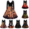Tiro real em estoque Amazon venda imperdível Halloween 2023 posicionamento com decote em V queimando flor manga comprida costura grande vestido de balanço