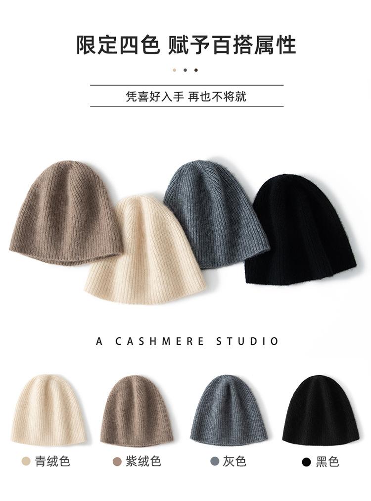 Cashmere Outono e Inverno Novas Mulheres Lã Quente Proteção de Orelha Cor Sólida Clássico All-match Moda Pulôver Tricô Chapéu
