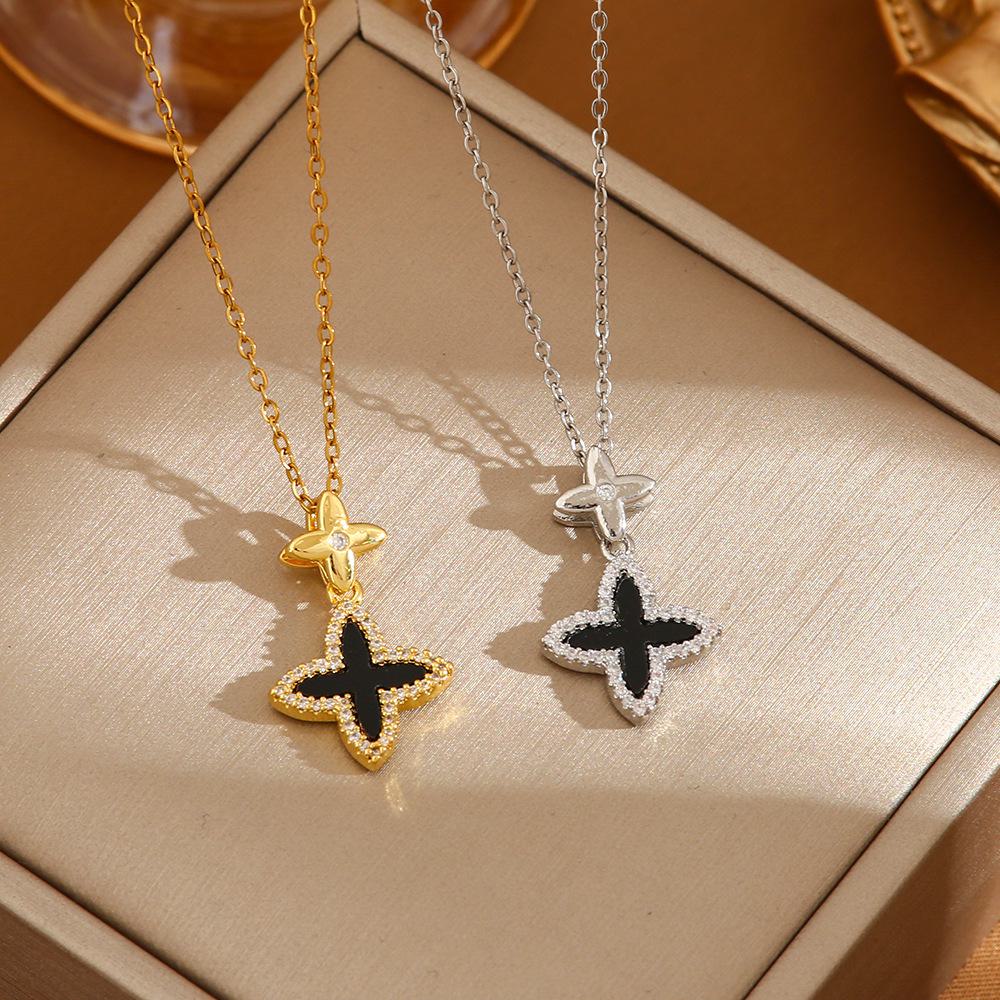 [Aço Titânio] Luxo leve elegante lindo shell quatro folhas colar de flores mulheres Internet Celebridade All-match Clavicle Chain Titanium Steel Chain