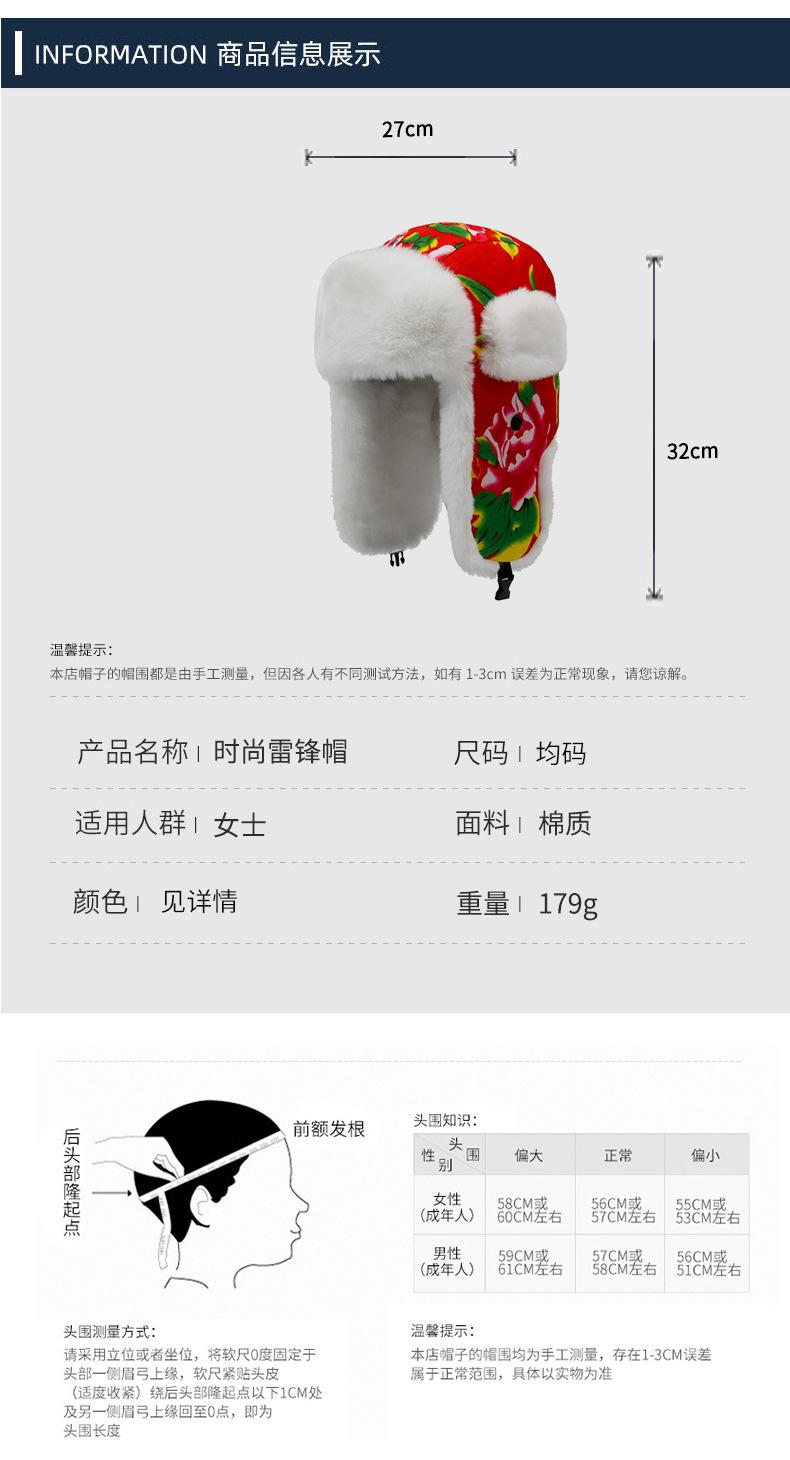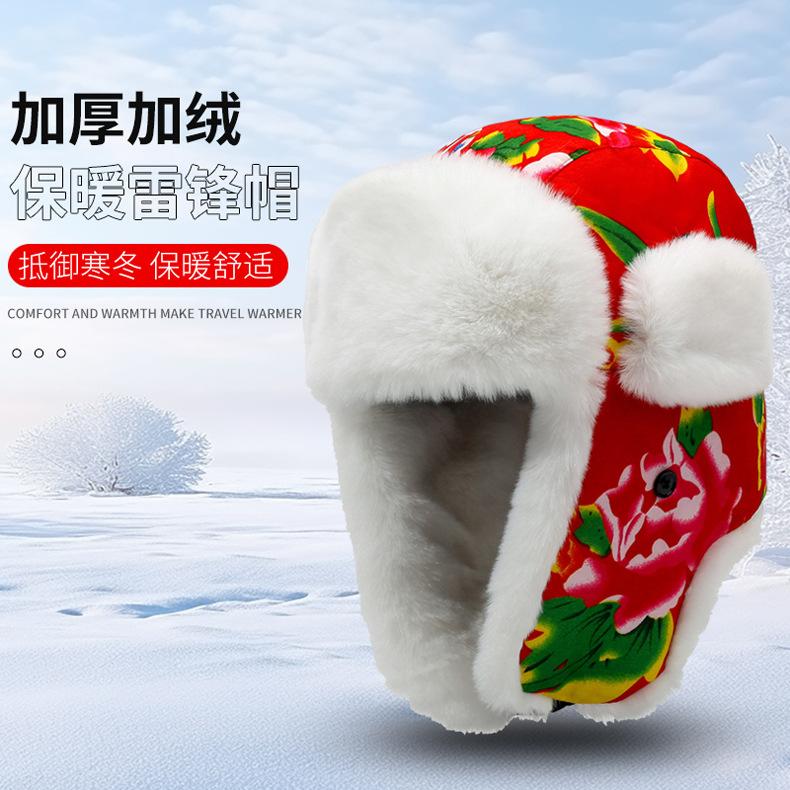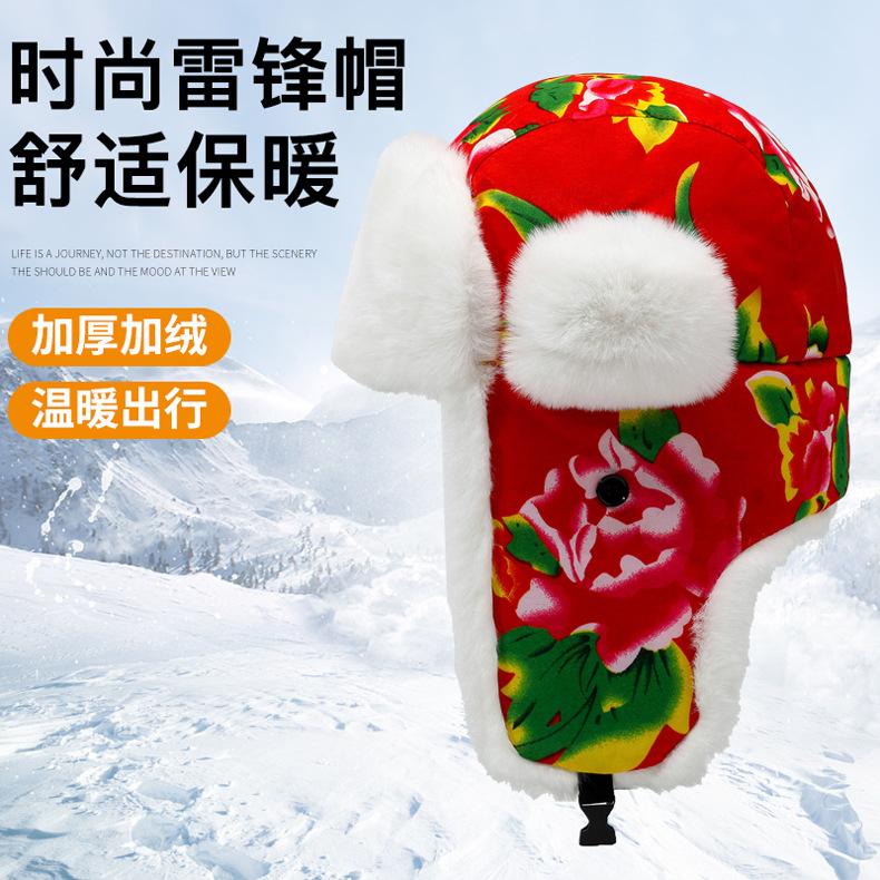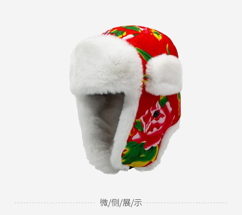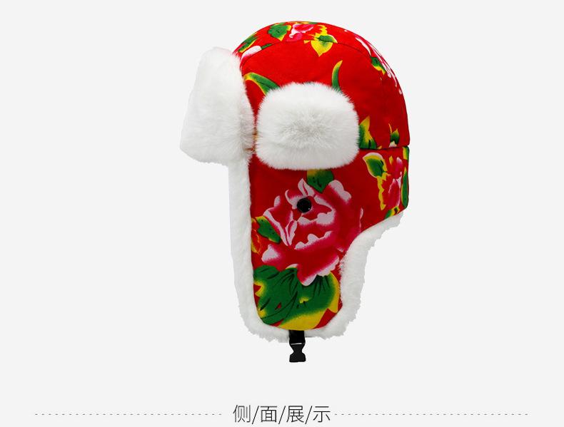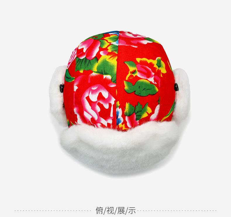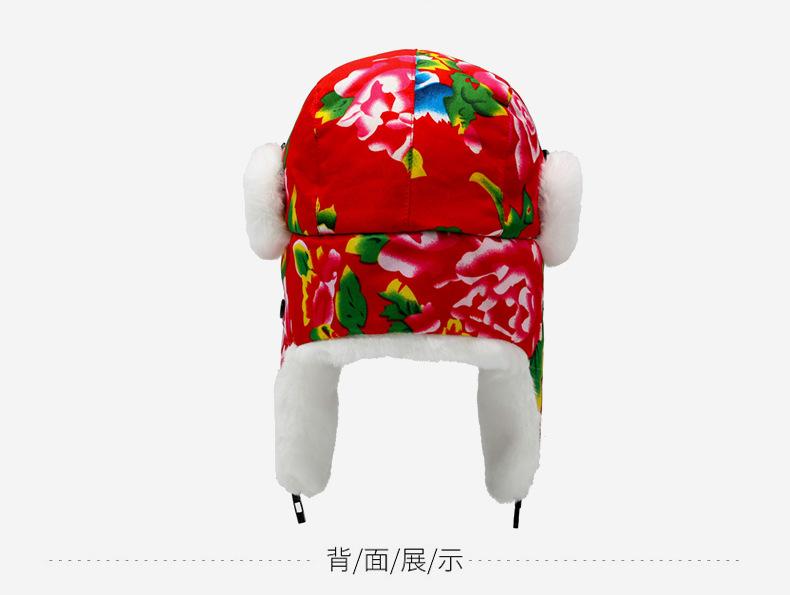 Chapéu de algodão estilo étnico retrô nordeste masculino grande flor lei feng chapéu feminino inverno ao ar livre bonito orelha proteção frio chapéu de equitação