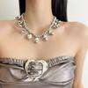 Colar de borla de contas redondas irregulares de estilo frio europeu e americano, leve, luxuoso, de alta qualidade, corrente de clavícula, retrô, nicho, corrente de pescoço, moderno