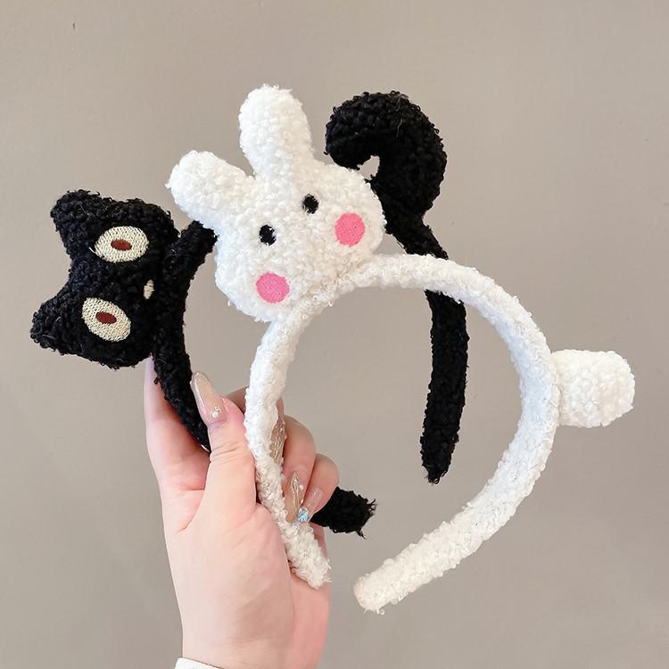 Gato preto cabelo aro gato bonito lavar rosto feminino outono e inverno internet popular novo chapéus crianças cabelo aro pelúcia cabelo laço grampos de cabelo