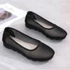 Sapatos de malha femininos de verão, calçados de trabalho pretos, respiráveis, de sola macia, de malha, sapatos femininos confortáveis, de malha oca, para mães