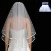 Véu de noiva com dupla camada e fio de broca, fábrica de véu de noiva branco, atacado, pode ser personalizado