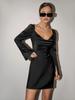 Vestido de cetim preto sexy com decote em V profundo 2023 vestido de noite de comércio exterior da moda europeia e americana nova