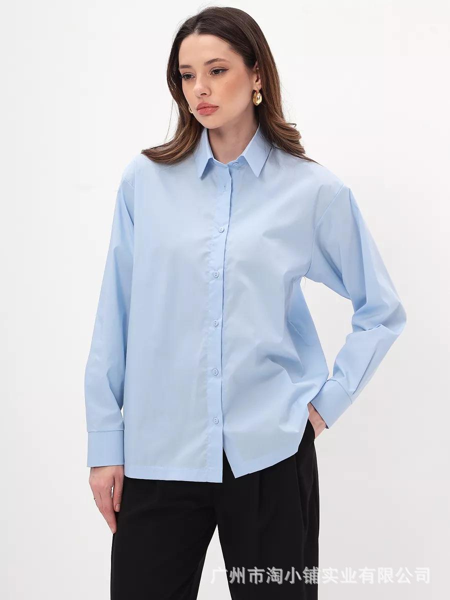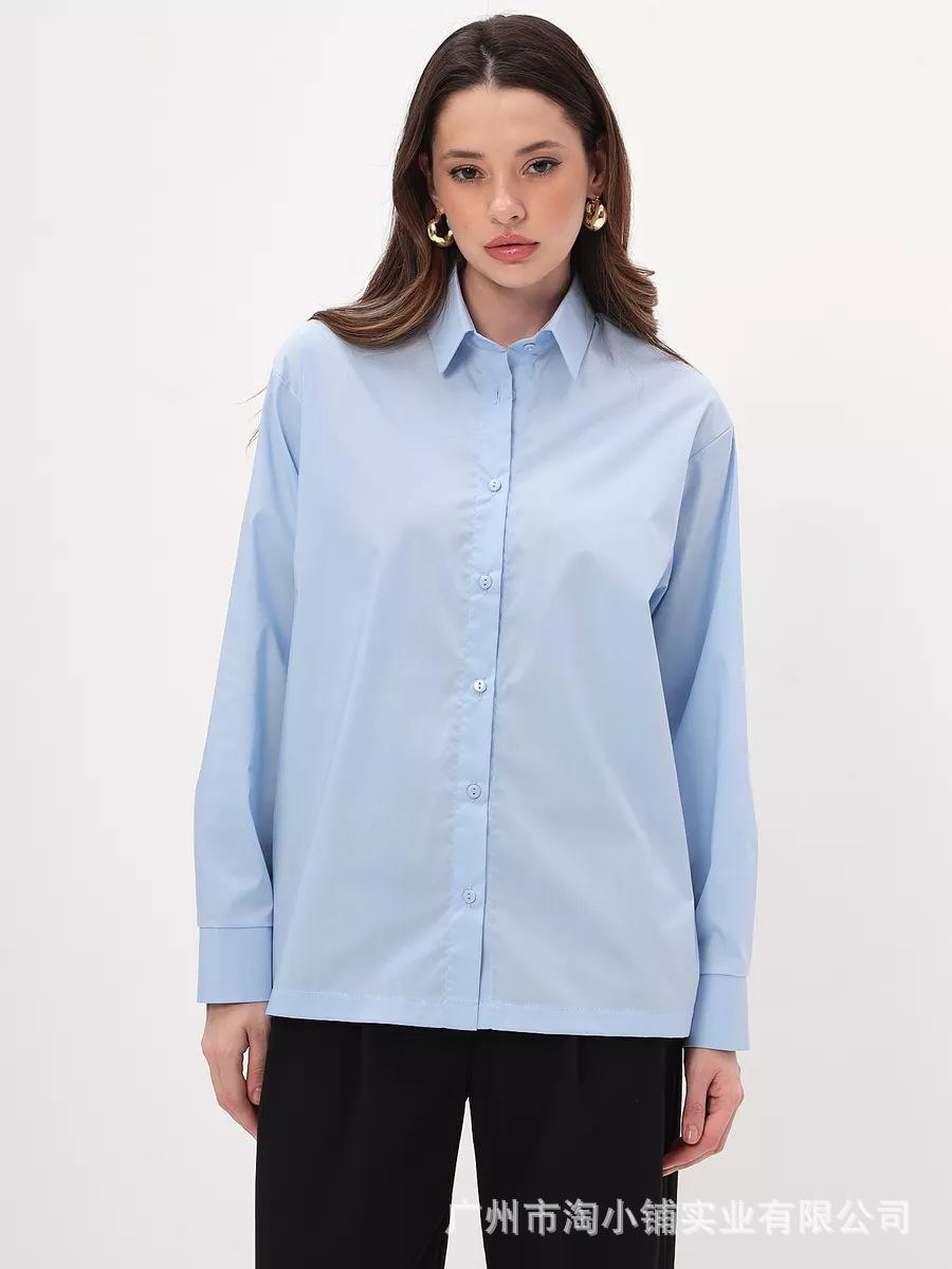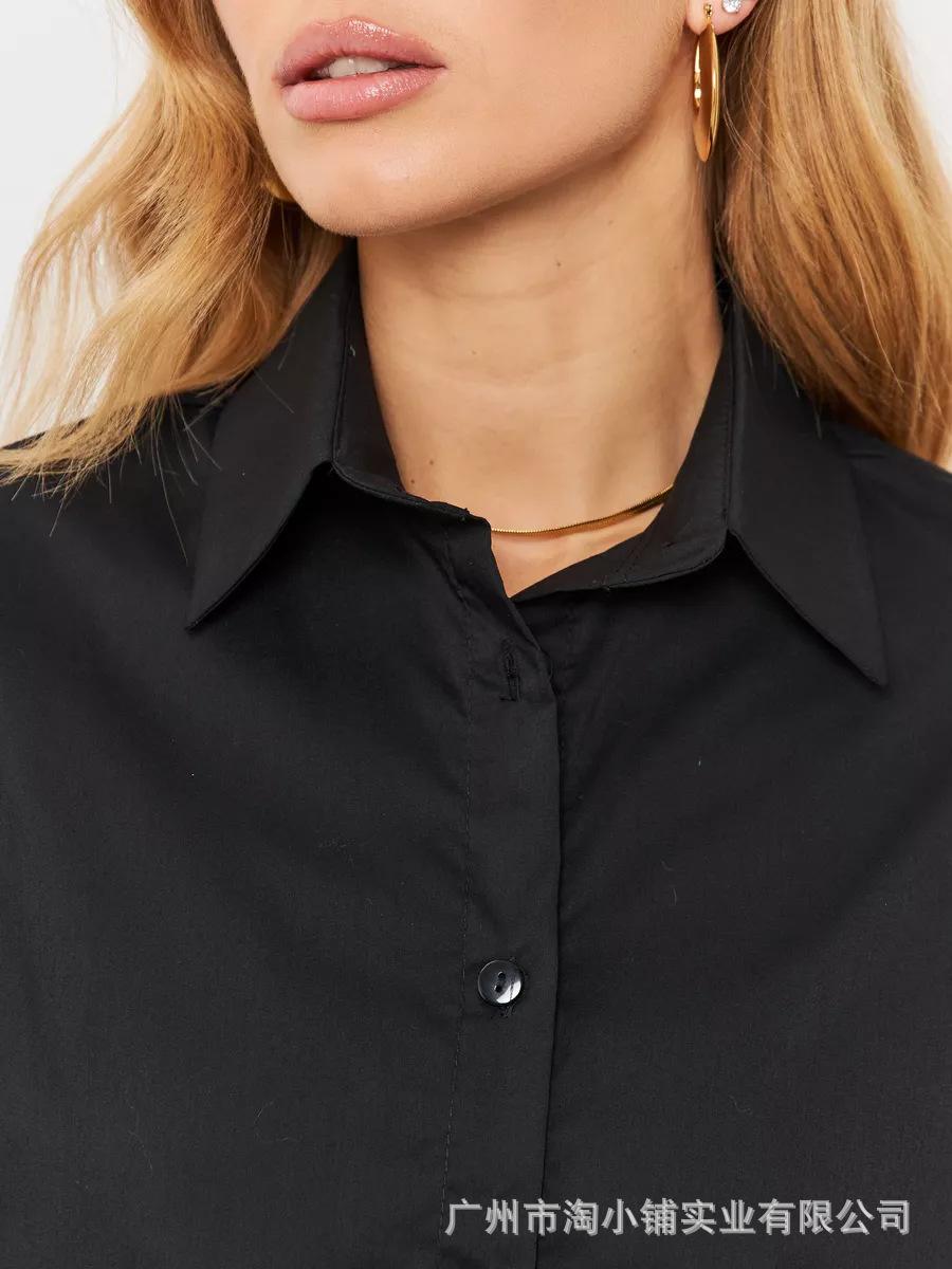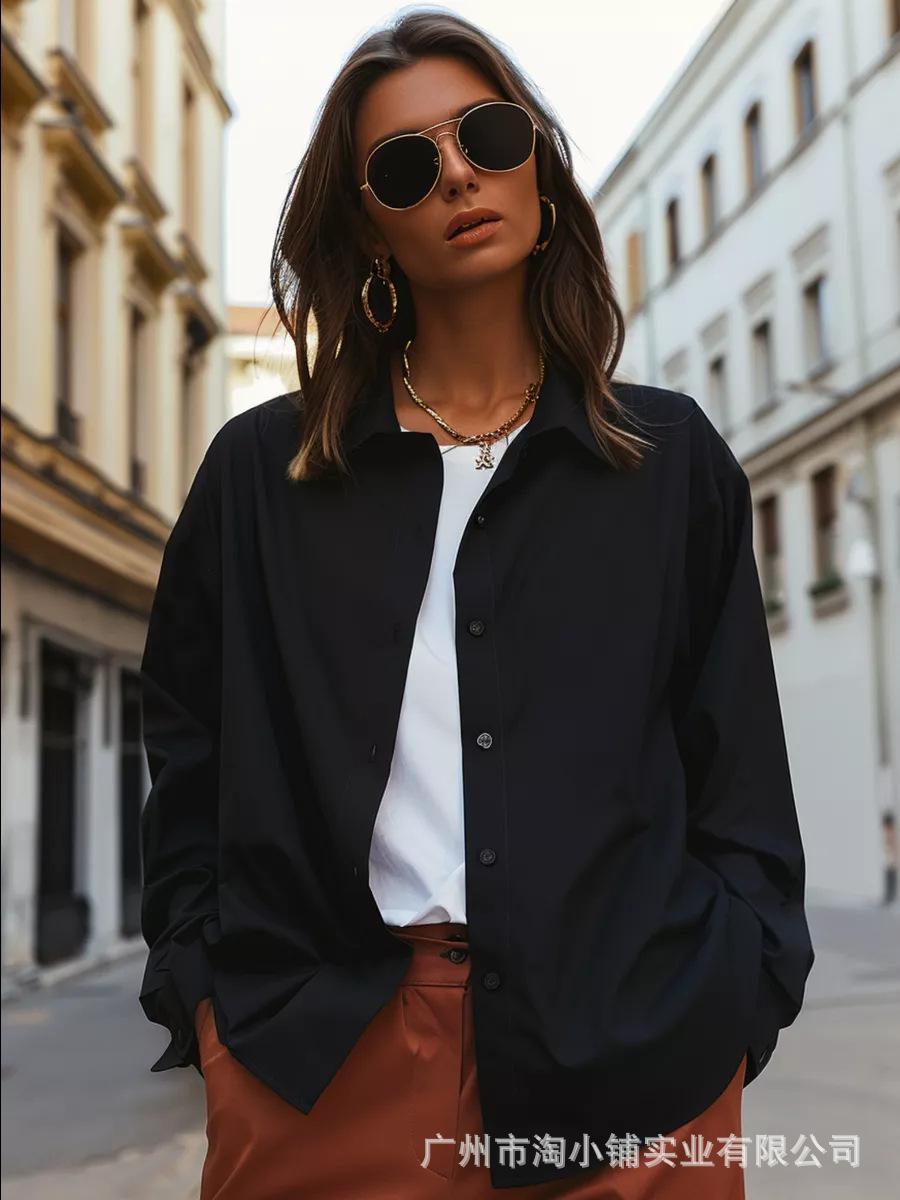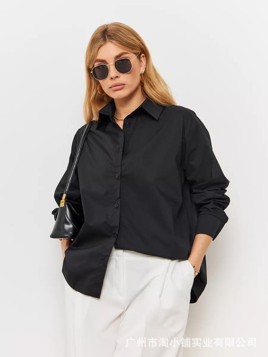 Camisa feminina preta elegante larga solta estilo francês negócios viajante simples 2024 moda primavera e verão mais vendida