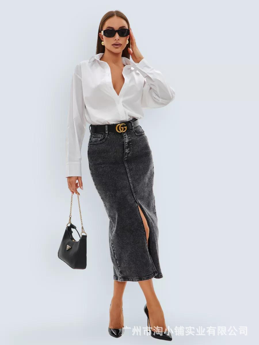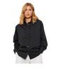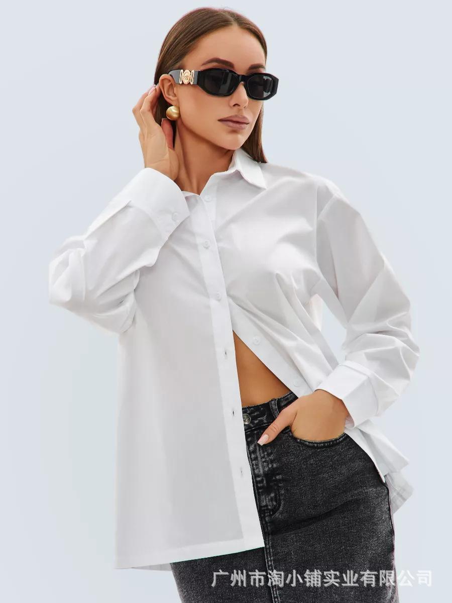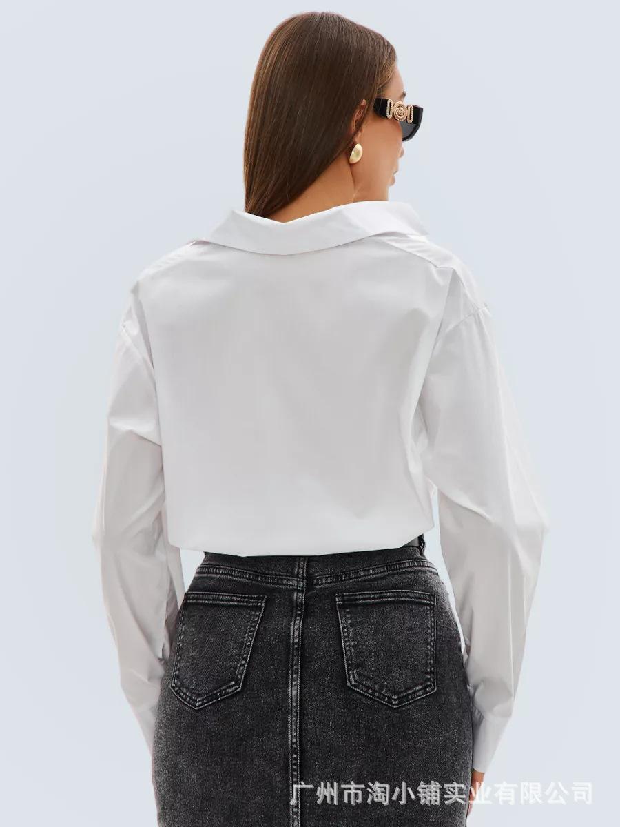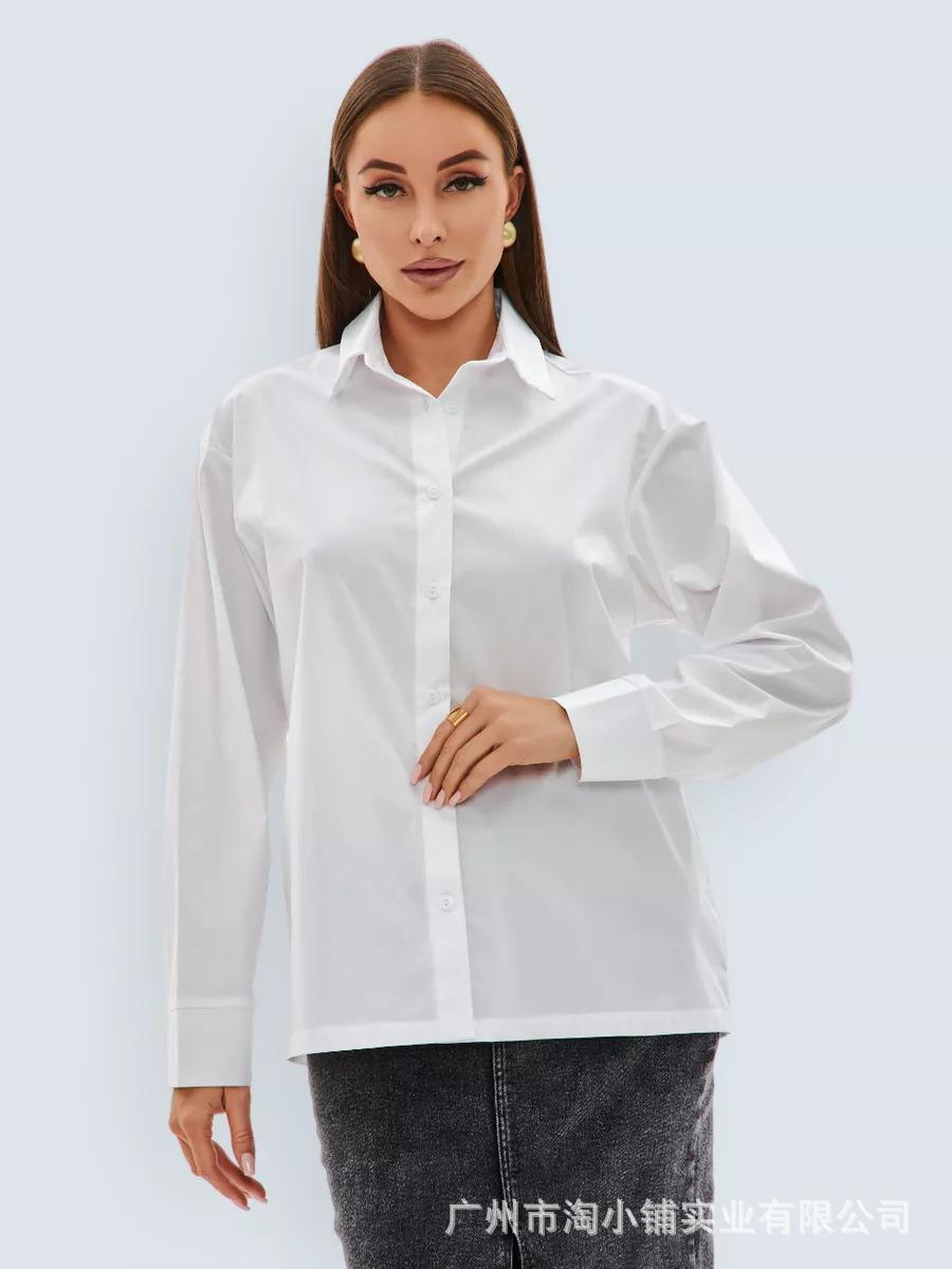 Camisa feminina preta elegante larga solta estilo francês negócios viajante simples 2024 moda primavera e verão mais vendida