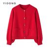 Cardigan de malha com manga lanterna vermelha retrô elegante elegante elegante vermelho puro casaco suéter de manga comprida estilo Chanel para uso externo