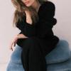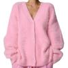 Europa e Estados Unidos camisola de malha de veludo vison transfronteiriço com decote em V feminino 2024 outono e inverno novo casaco feminino de cor sólida solta de comércio exterior