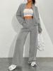 2024 Outono Nova Cor Sólida Solto Lazer Esportes Terno de Duas Peças Europeu e Americano Comércio Exterior Feminino TEMU Hot Search