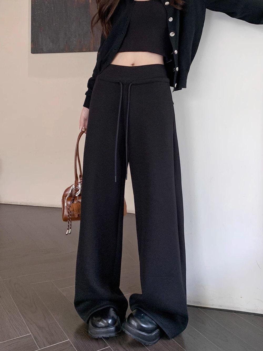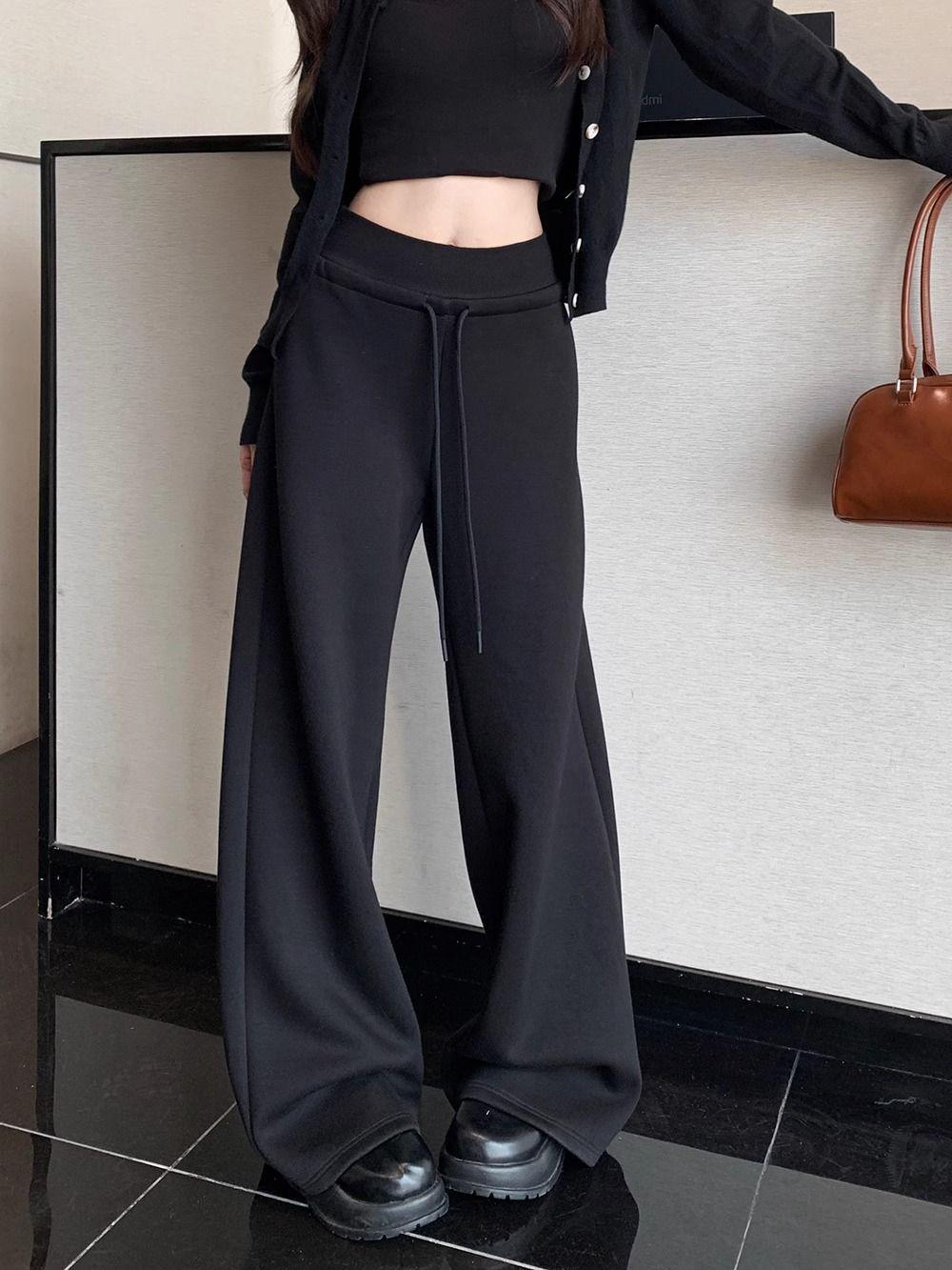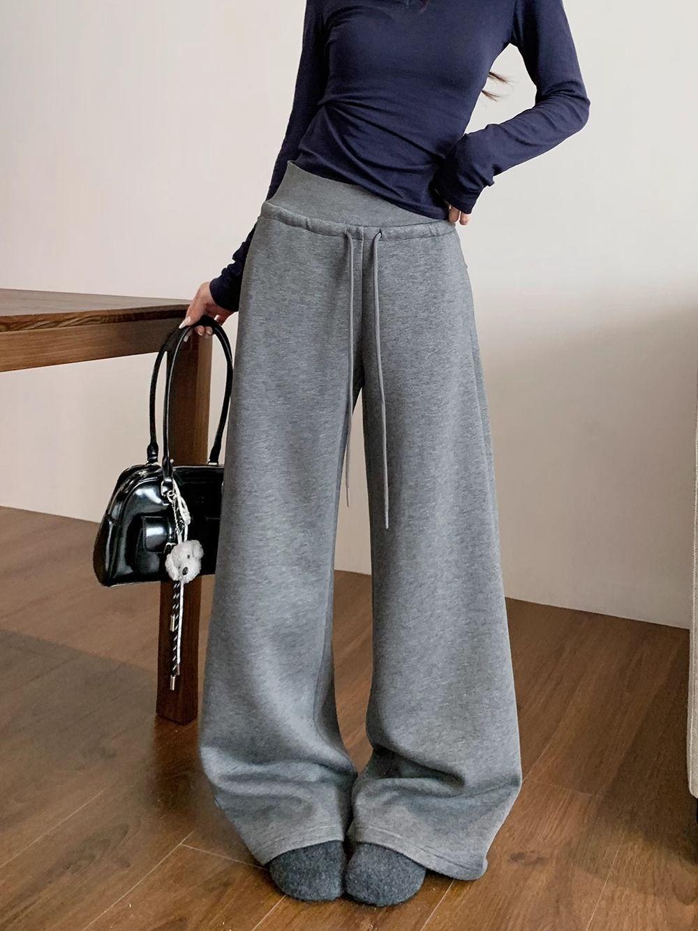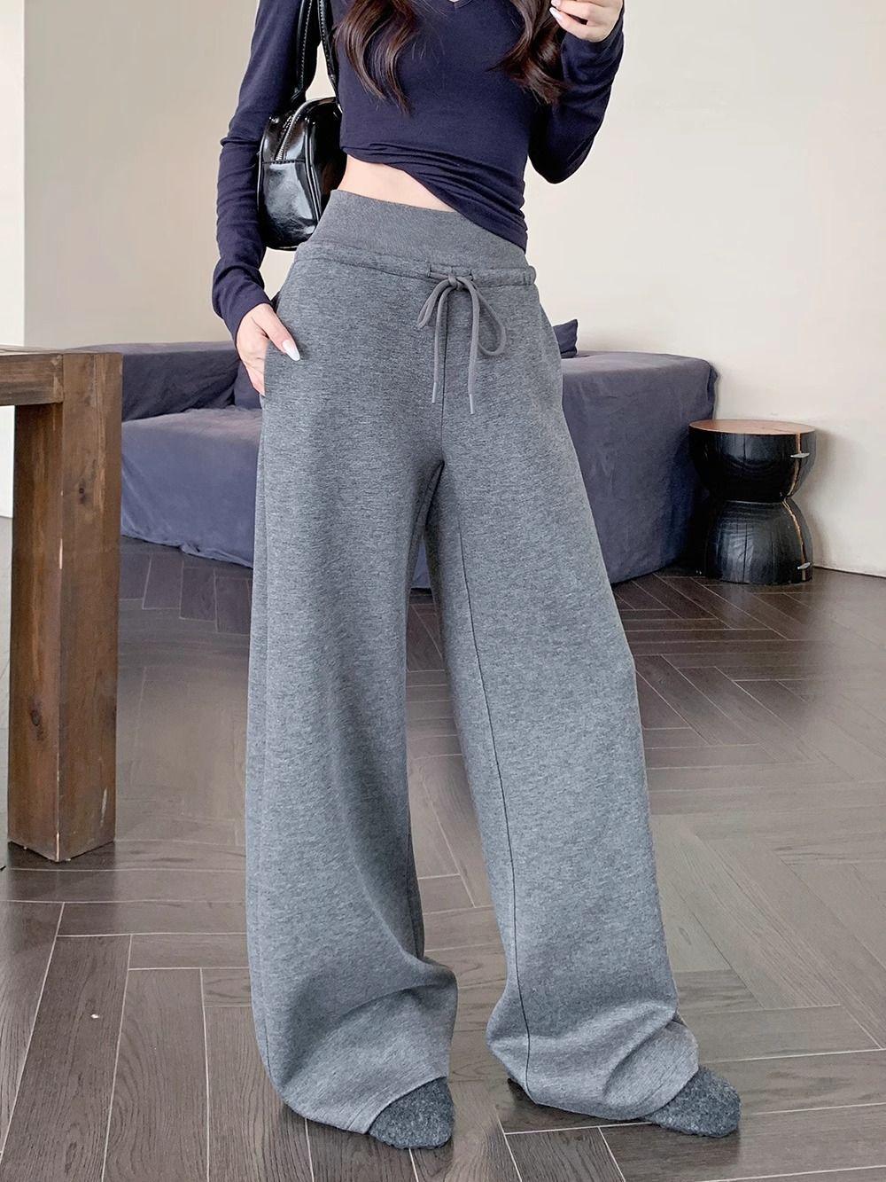 Calças Esportivas para Mulheres 2025 Novo Outono e Inverno Calças Retas Cintura Alta Versátil Slim Casual Larga Preguiçosa Perna Larga Calças de Moletom