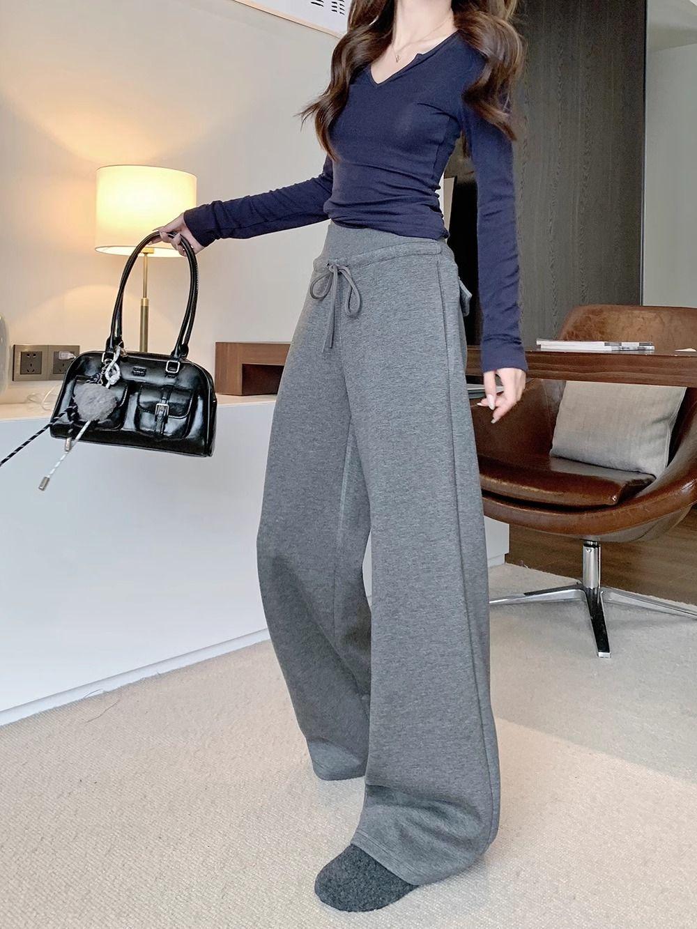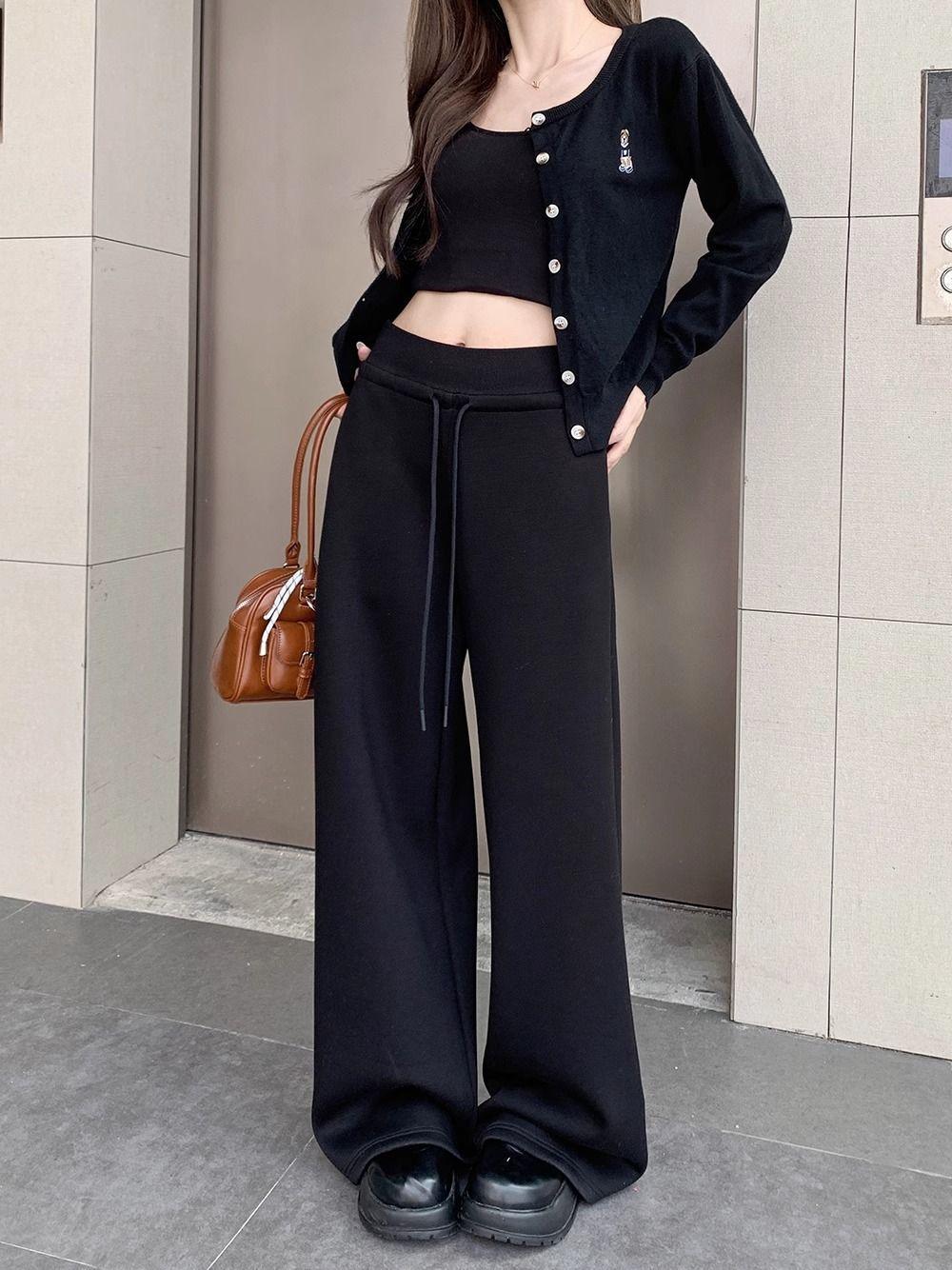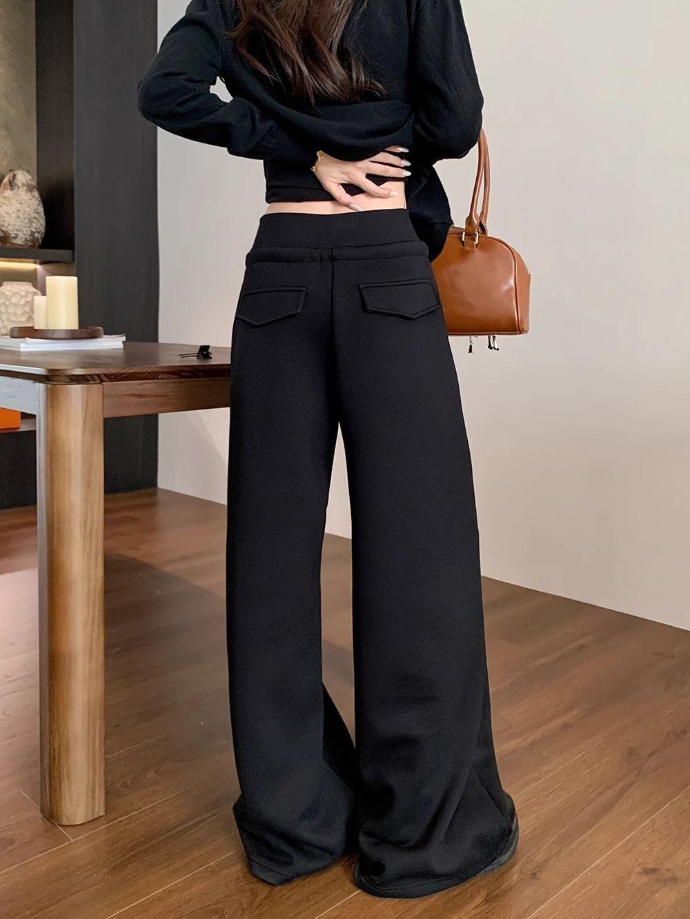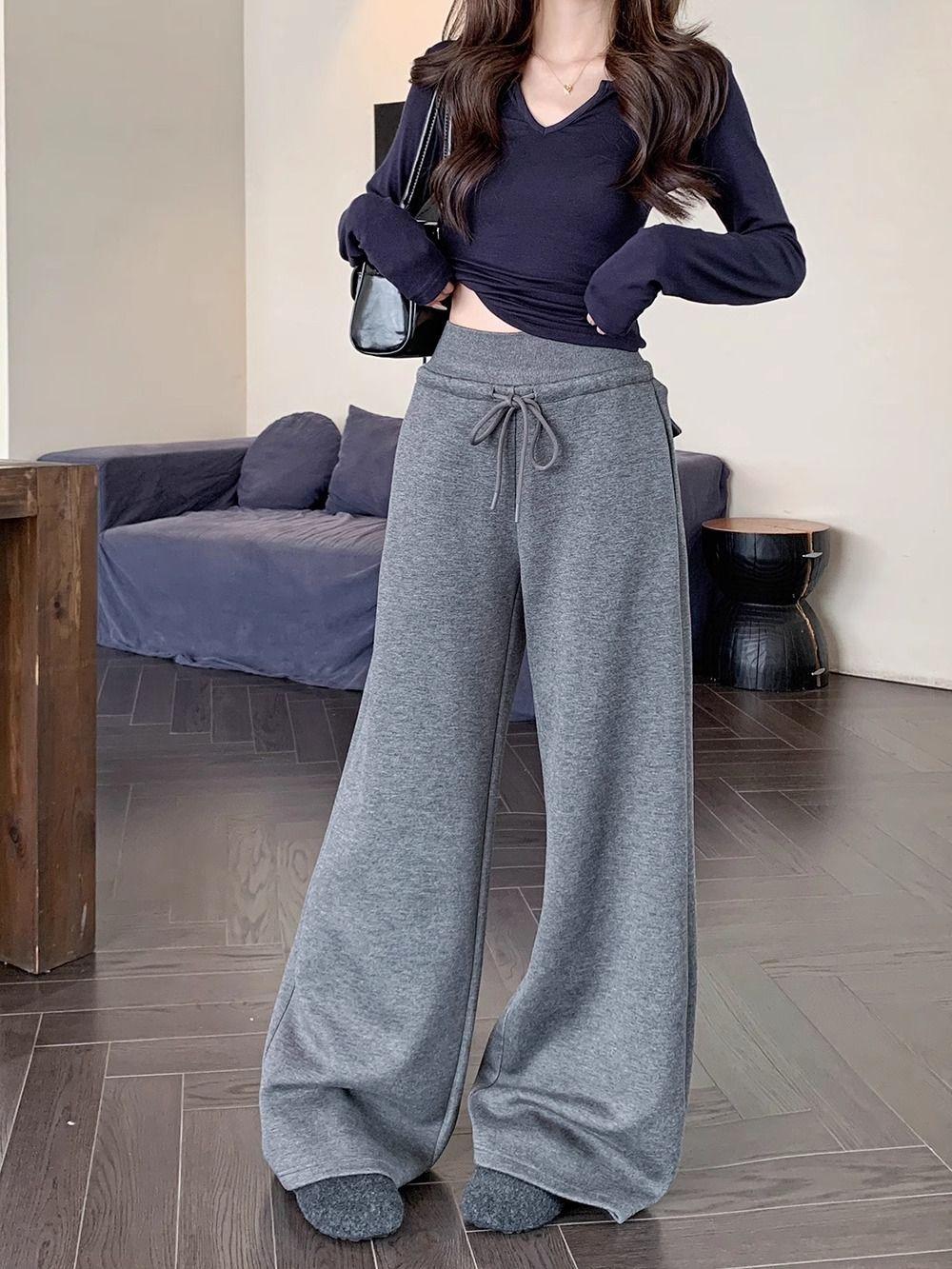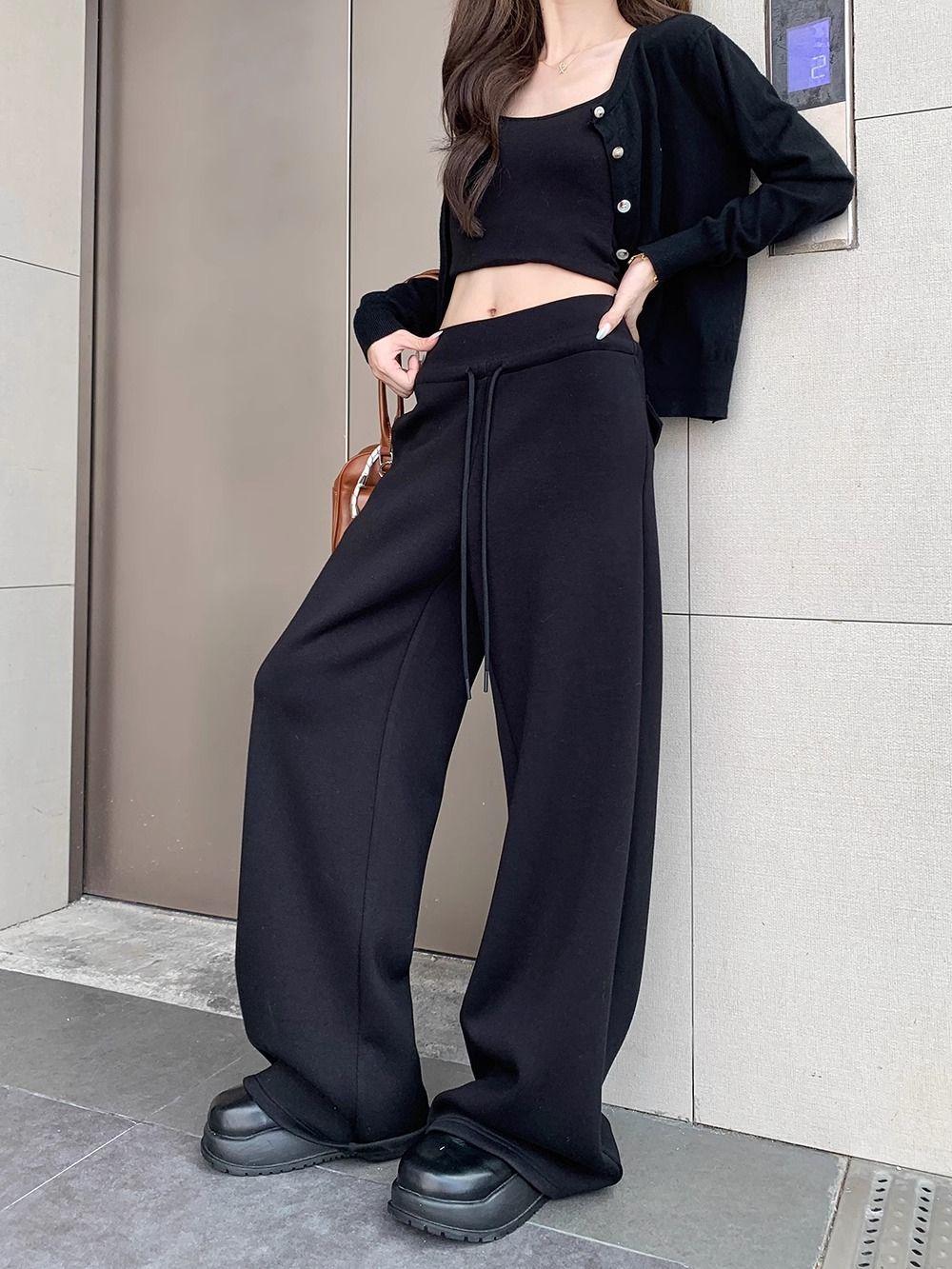 Calças Esportivas para Mulheres 2025 Novo Outono e Inverno Calças Retas Cintura Alta Versátil Slim Casual Larga Preguiçosa Perna Larga Calças de Moletom