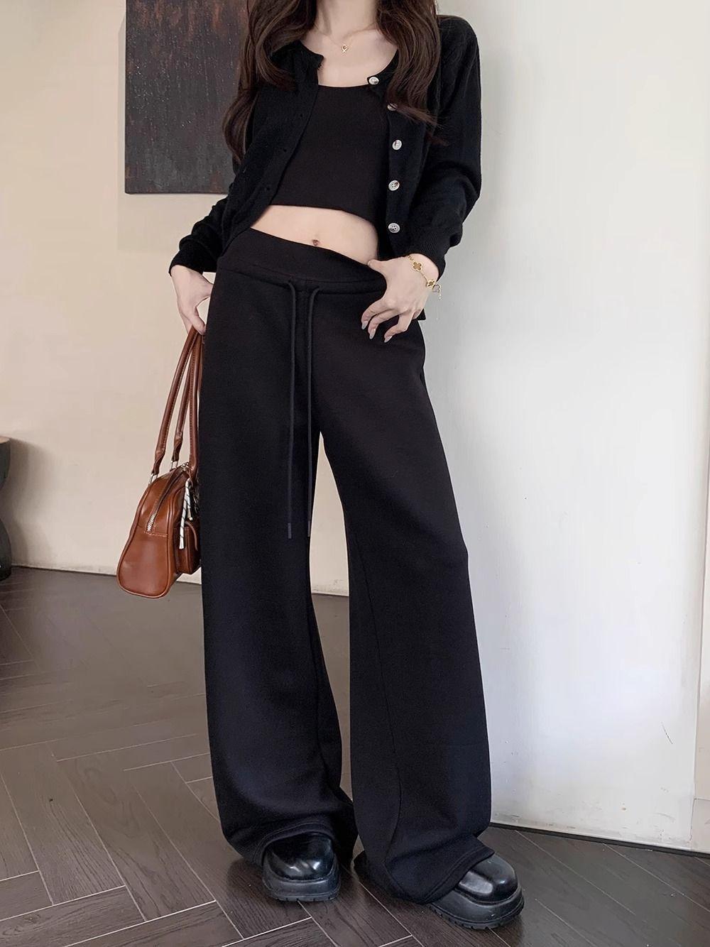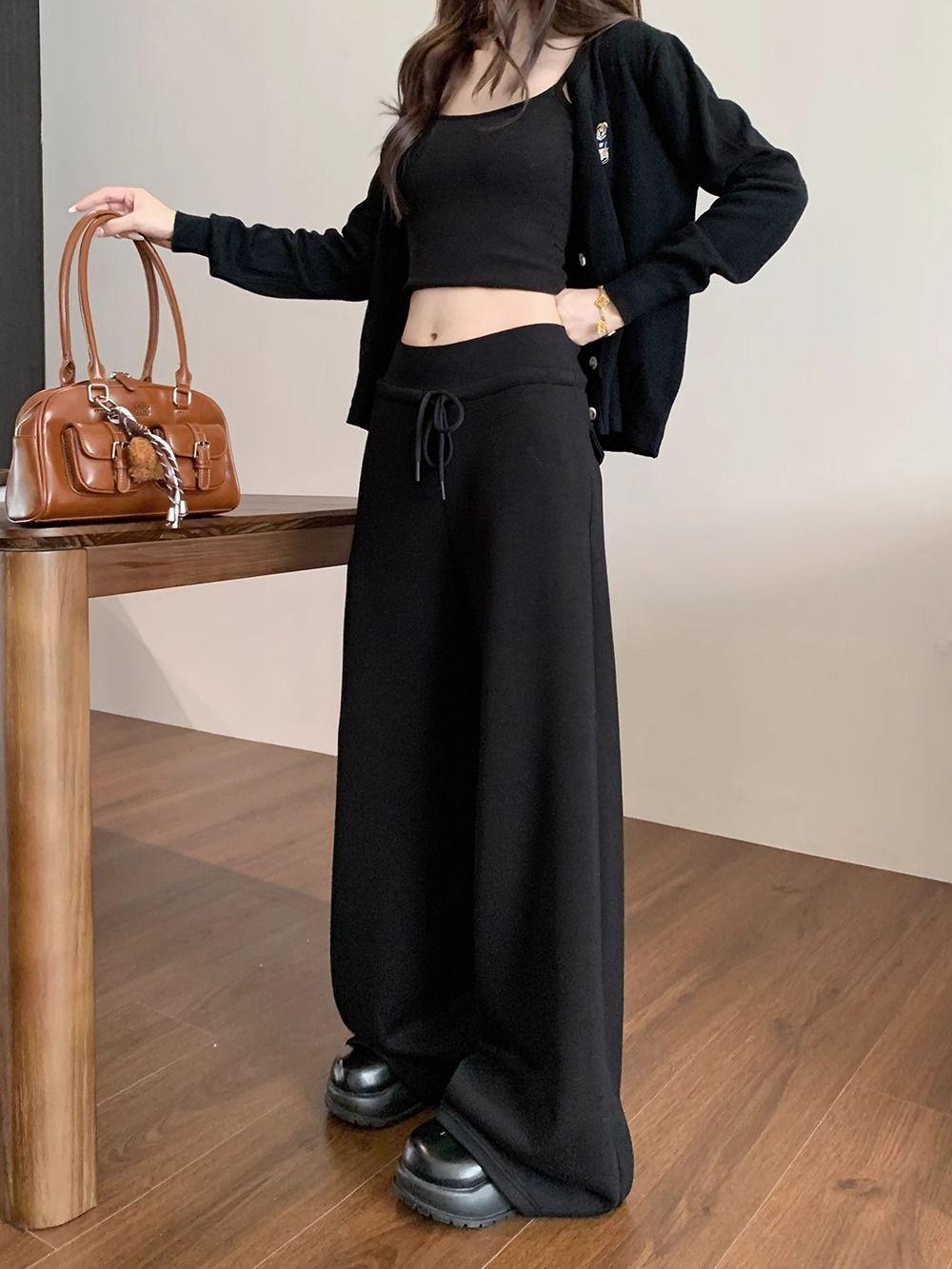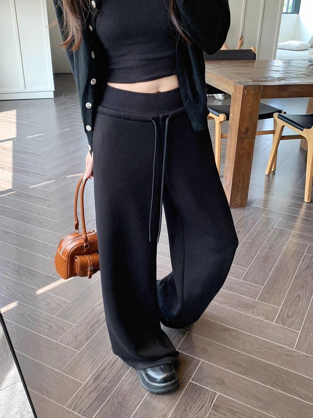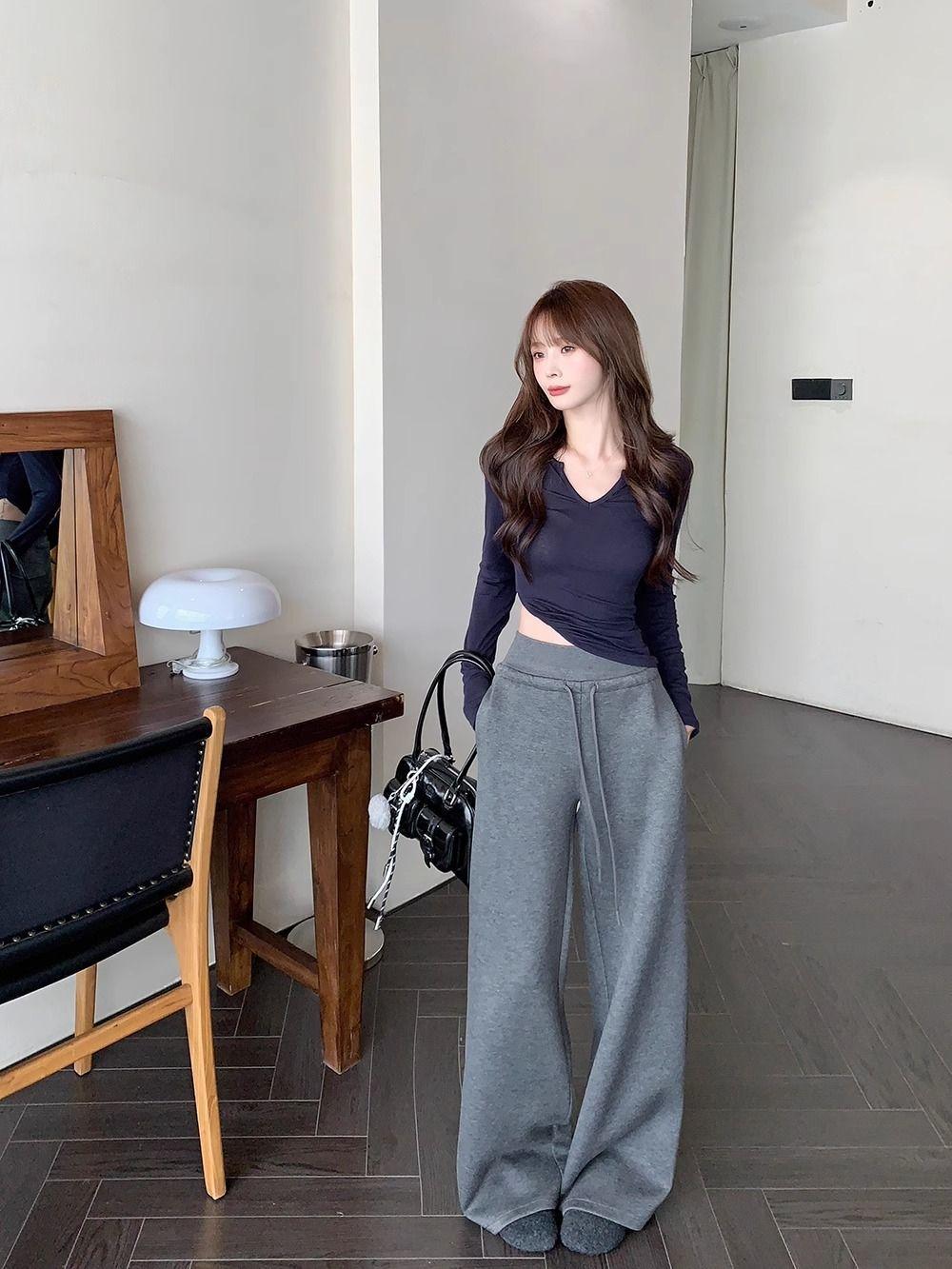 Calças Esportivas para Mulheres 2025 Novo Outono e Inverno Calças Retas Cintura Alta Versátil Slim Casual Larga Preguiçosa Perna Larga Calças de Moletom