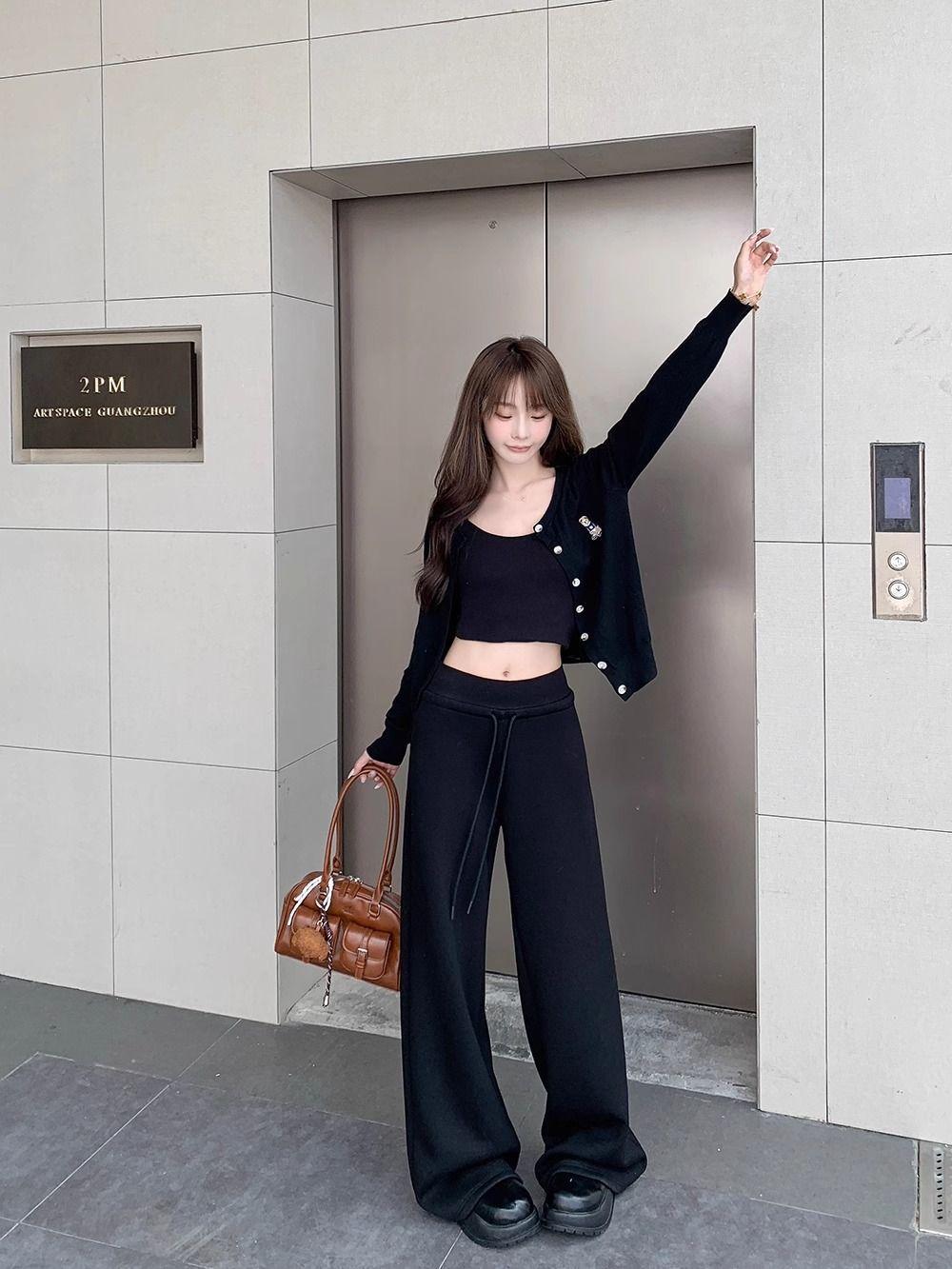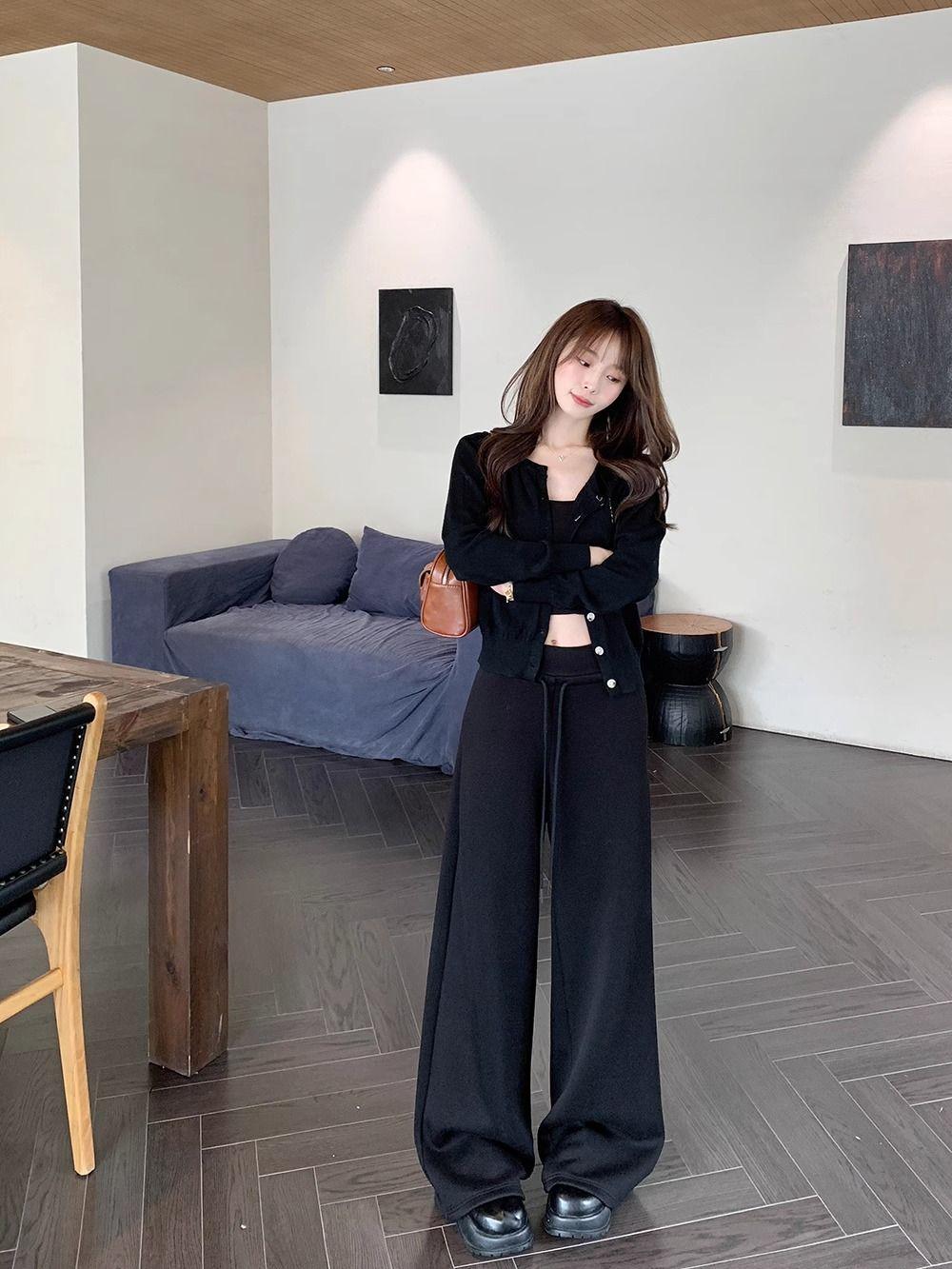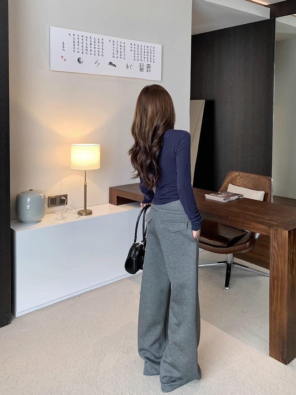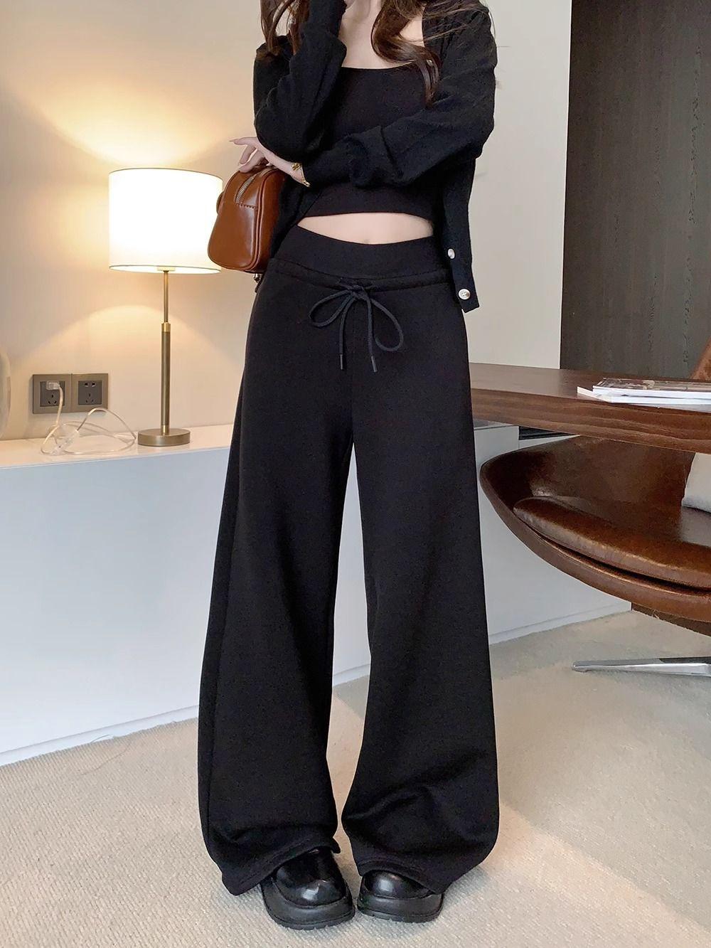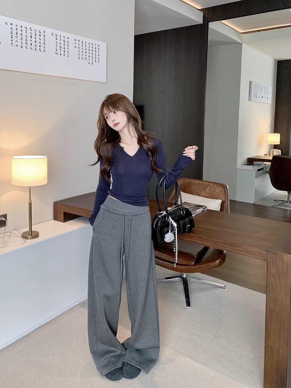 Calças Esportivas para Mulheres 2025 Novo Outono e Inverno Calças Retas Cintura Alta Versátil Slim Casual Larga Preguiçosa Perna Larga Calças de Moletom