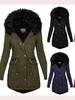 Desejo transfronteiriço Amazon Mulheres Europeu e Americano Outono e Inverno Cor Sólida Colarinho de Pele Com Capuz Comprimento Médio Engrossado Quente Acolchoado Algodão Roupas Femininas
