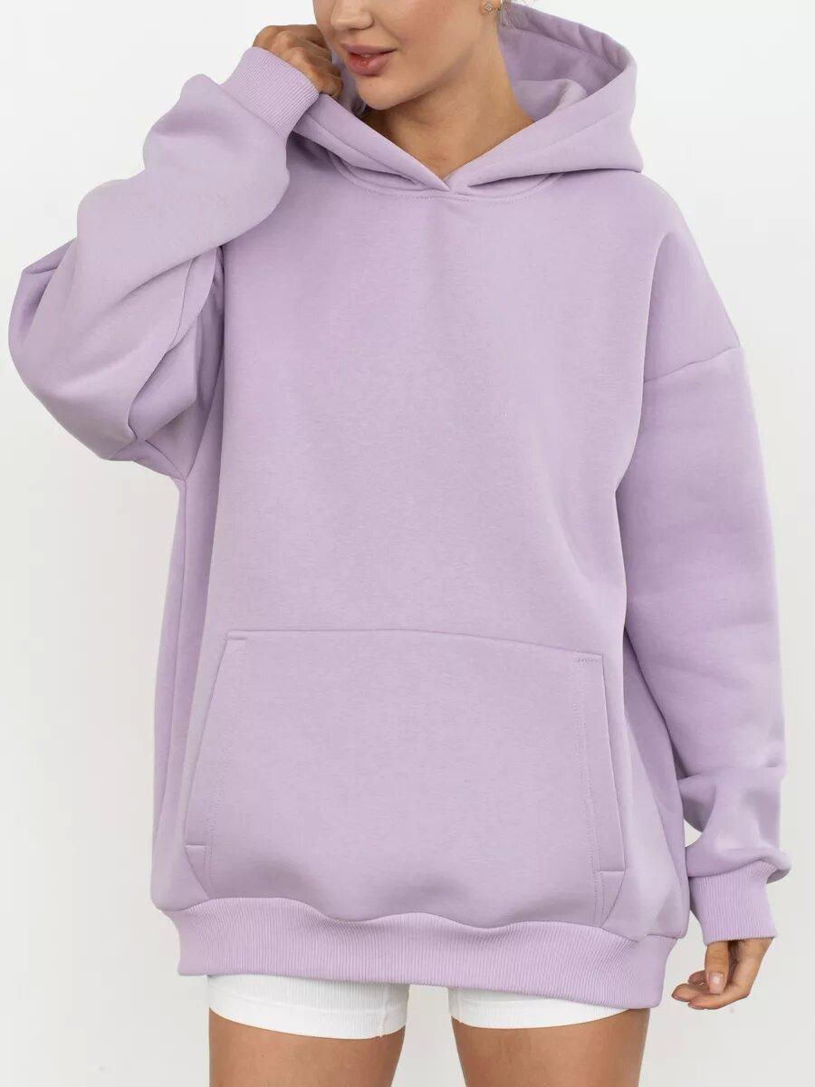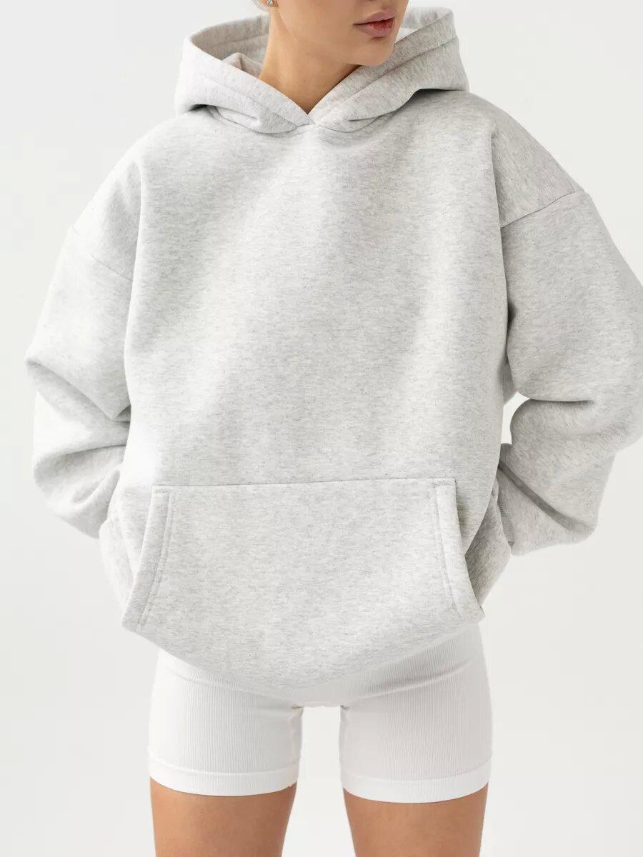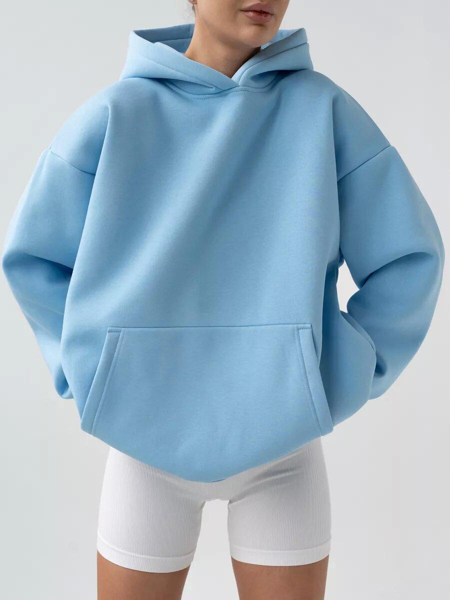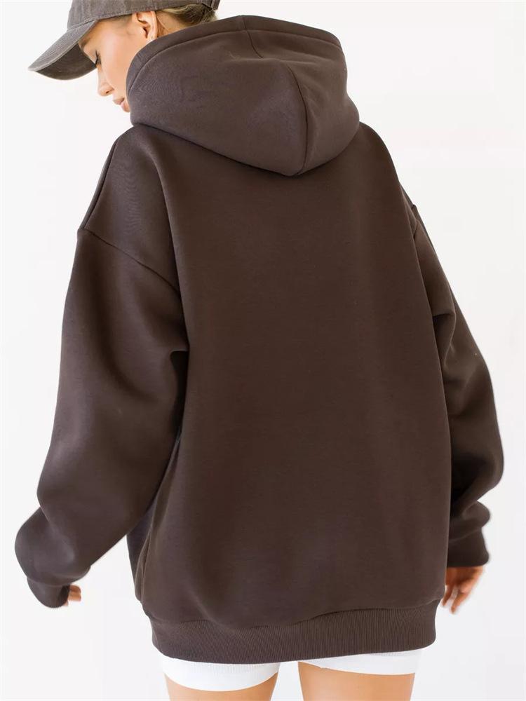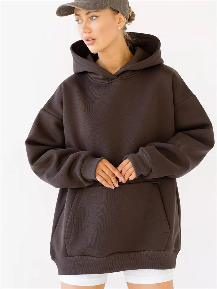 Amazon Roupa Europeia e Americana Transfronteiriça Cor Sólida Manga Longa Bolso Moletom Pulôver com Capuz Feminino Solto Casual