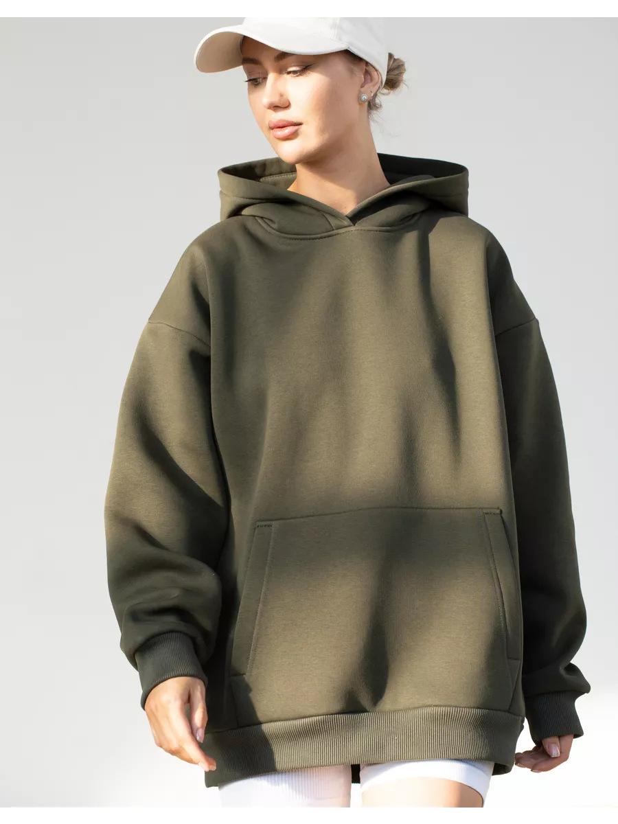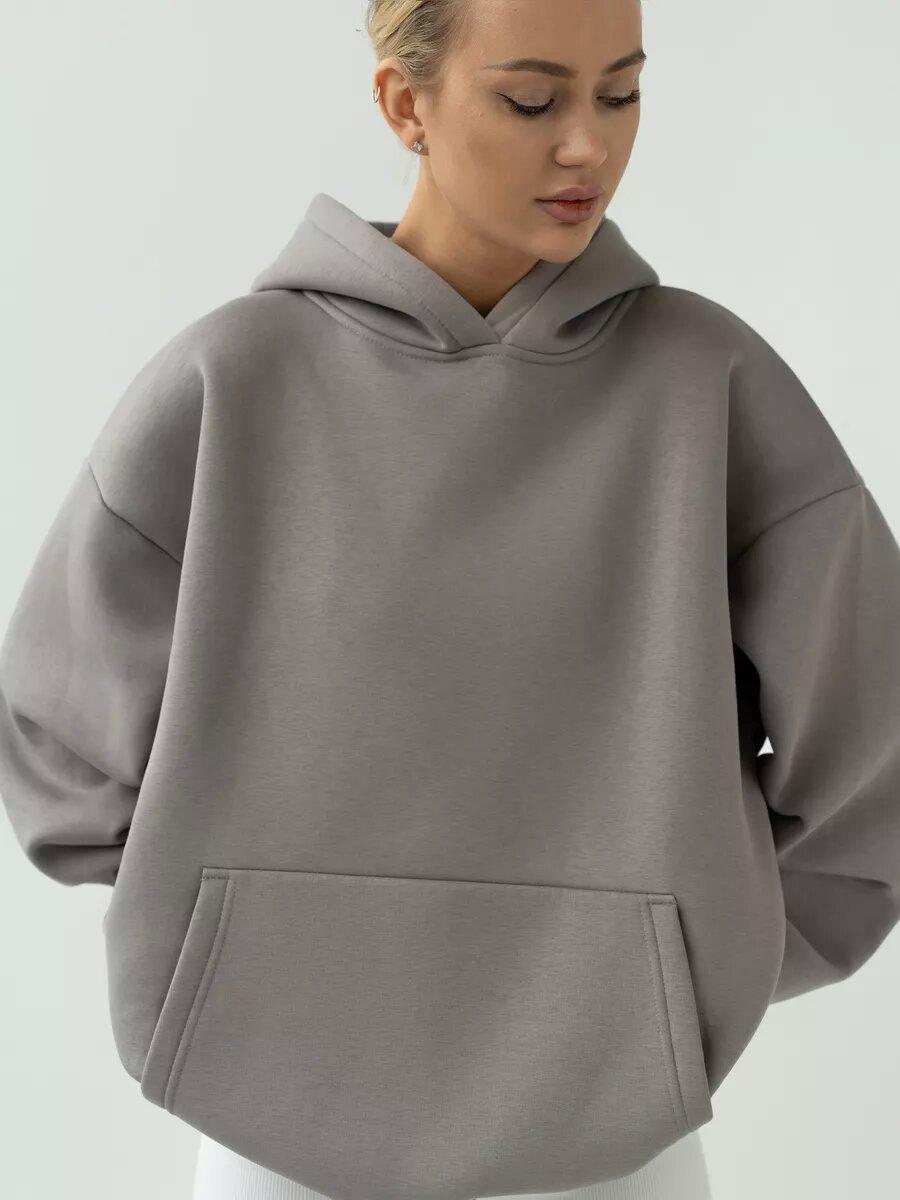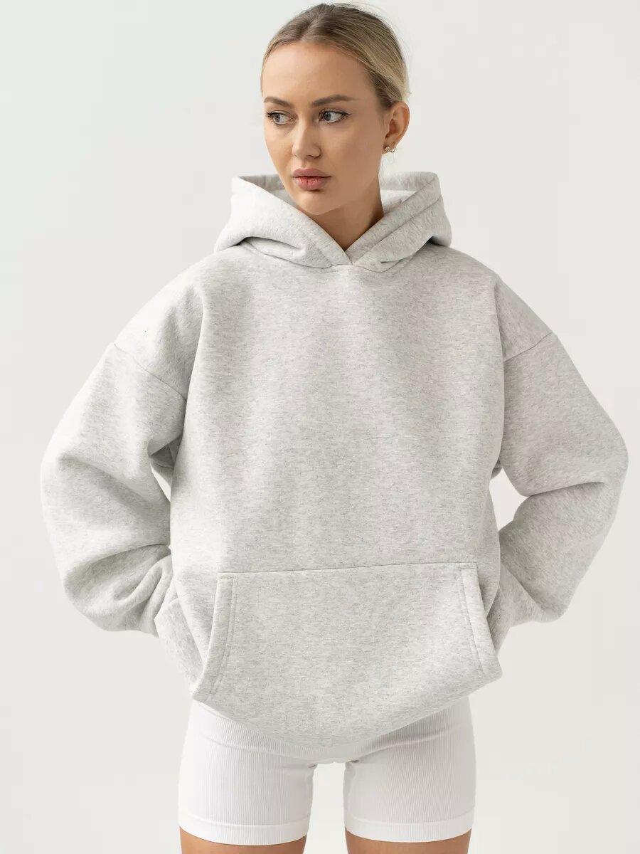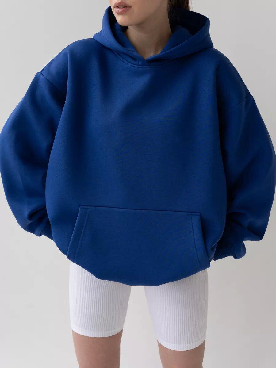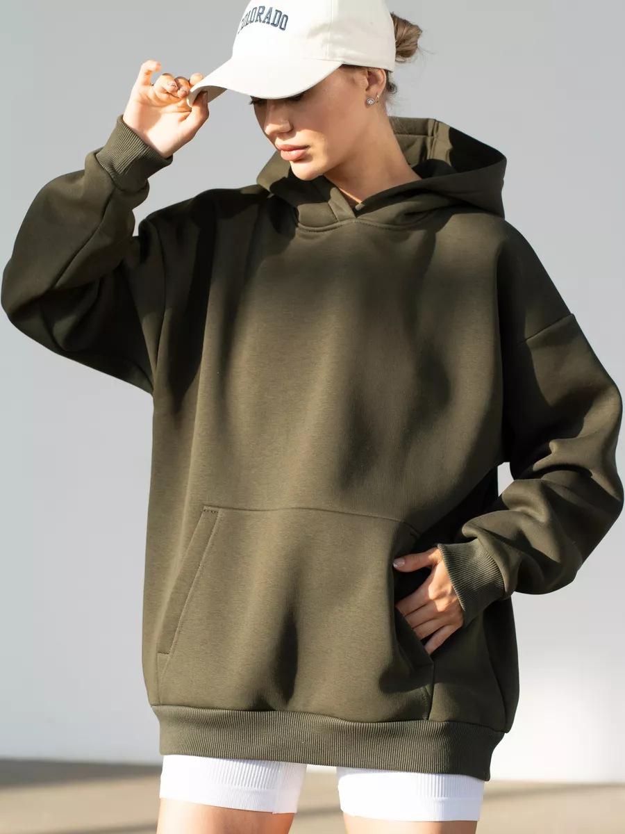 Amazon Roupa Europeia e Americana Transfronteiriça Cor Sólida Manga Longa Bolso Moletom Pulôver com Capuz Feminino Solto Casual