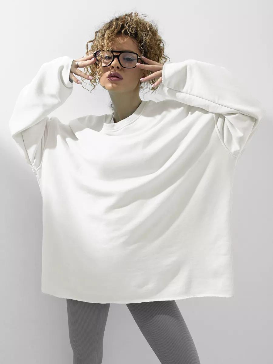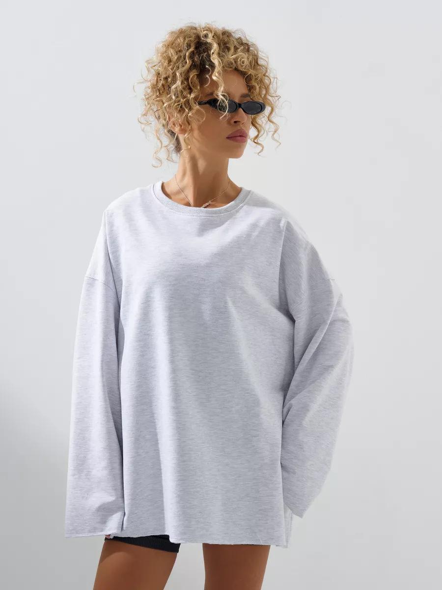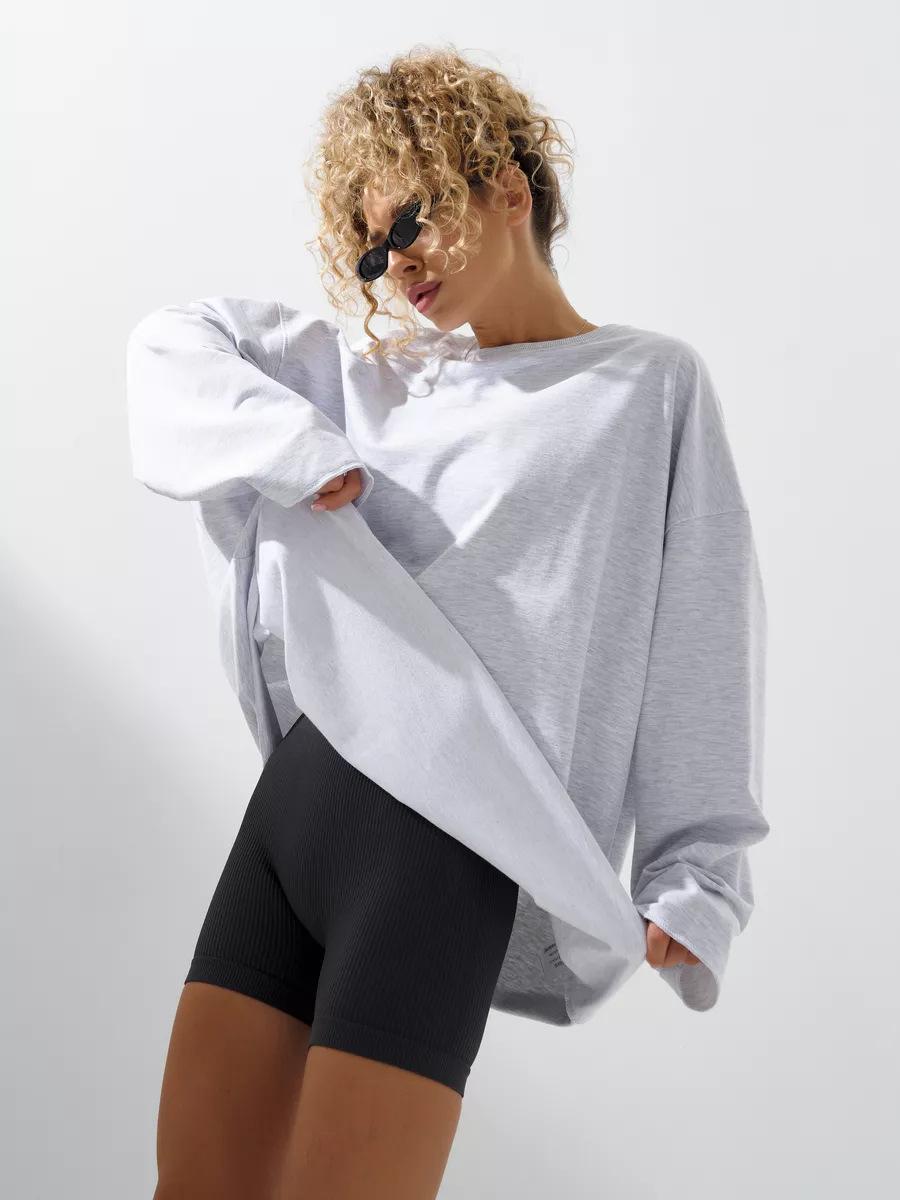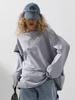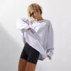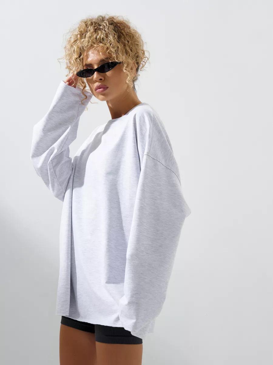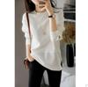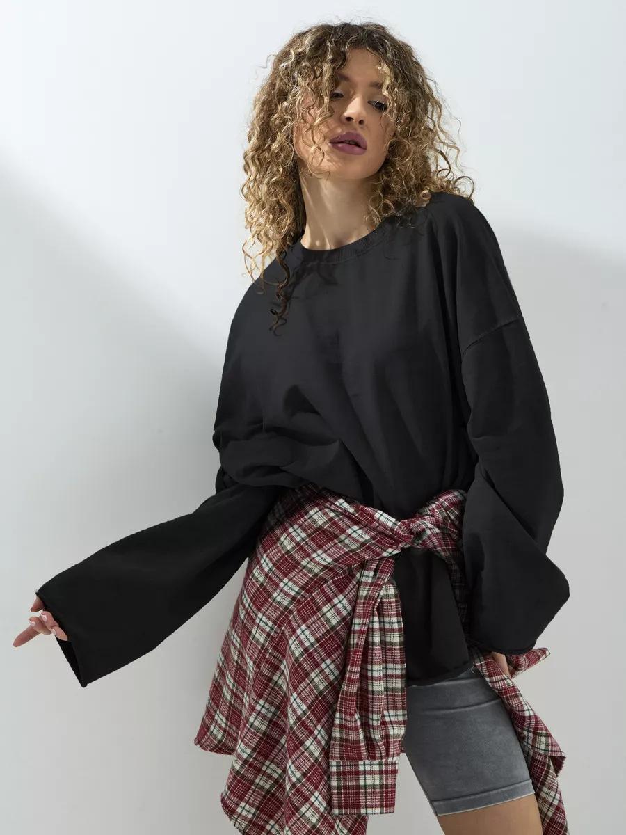 Europa e Estados Unidos transfronteiriça nova primavera e outono feminino solto cor sólida oversize gola redonda manga comprida casual camiseta moda suéter feminino