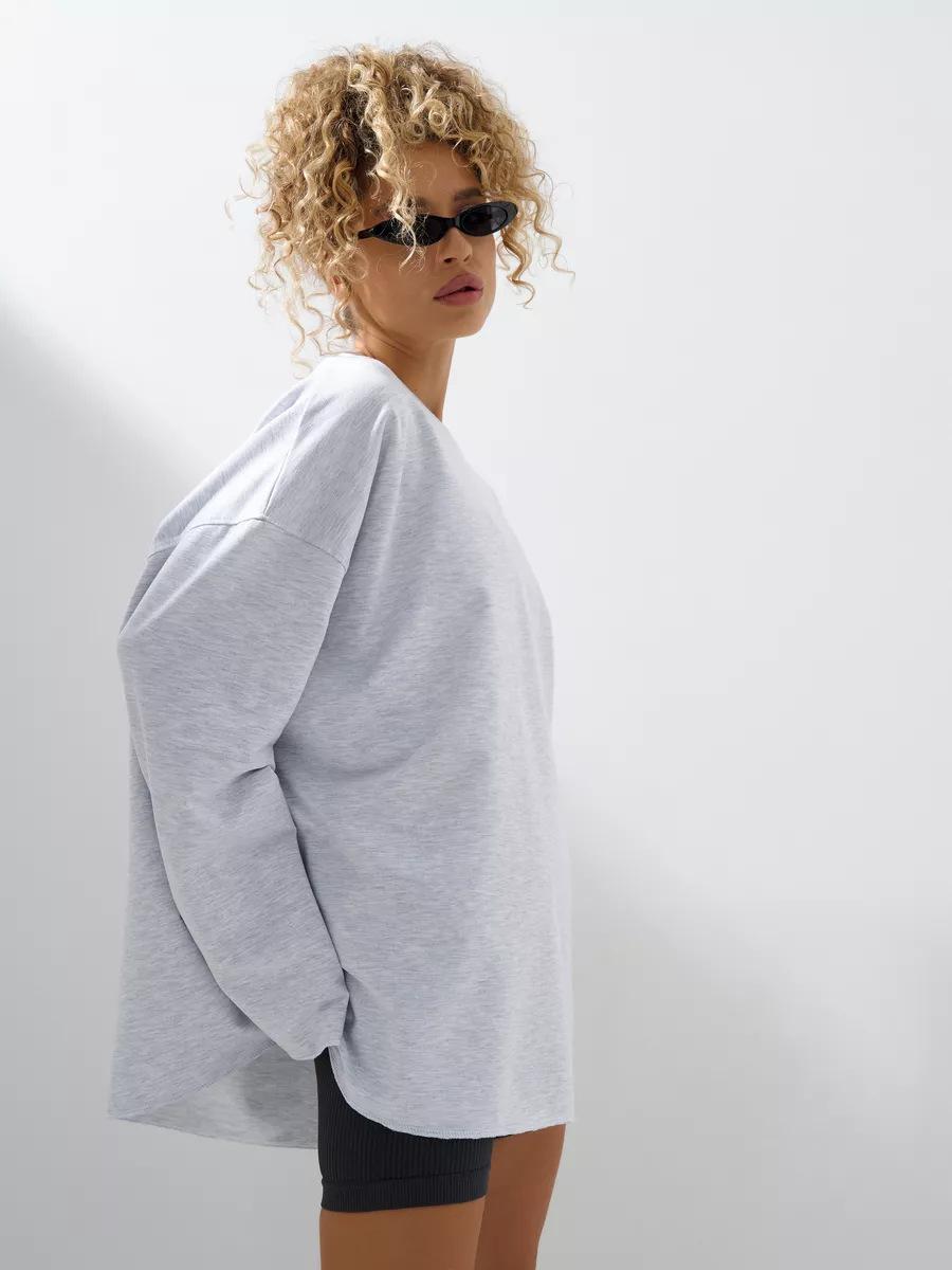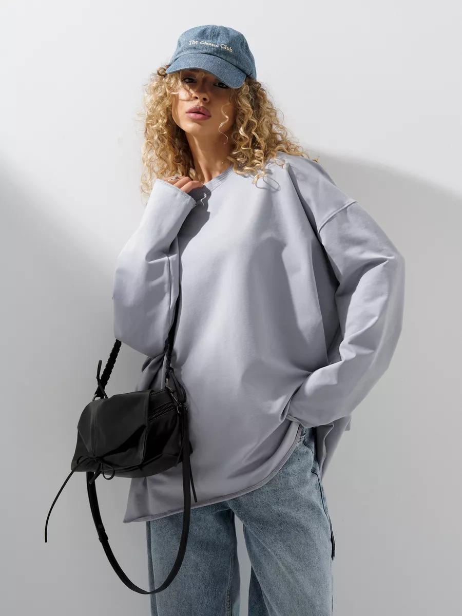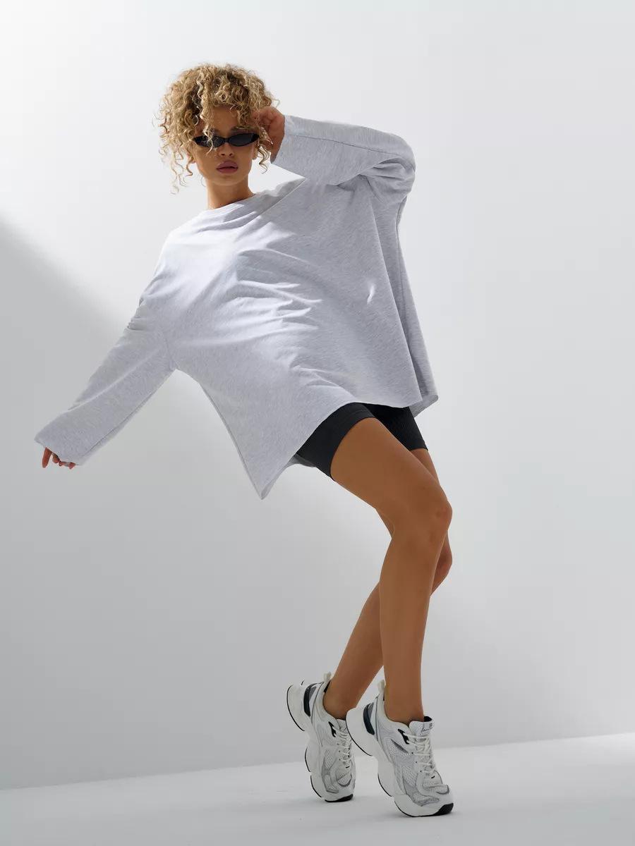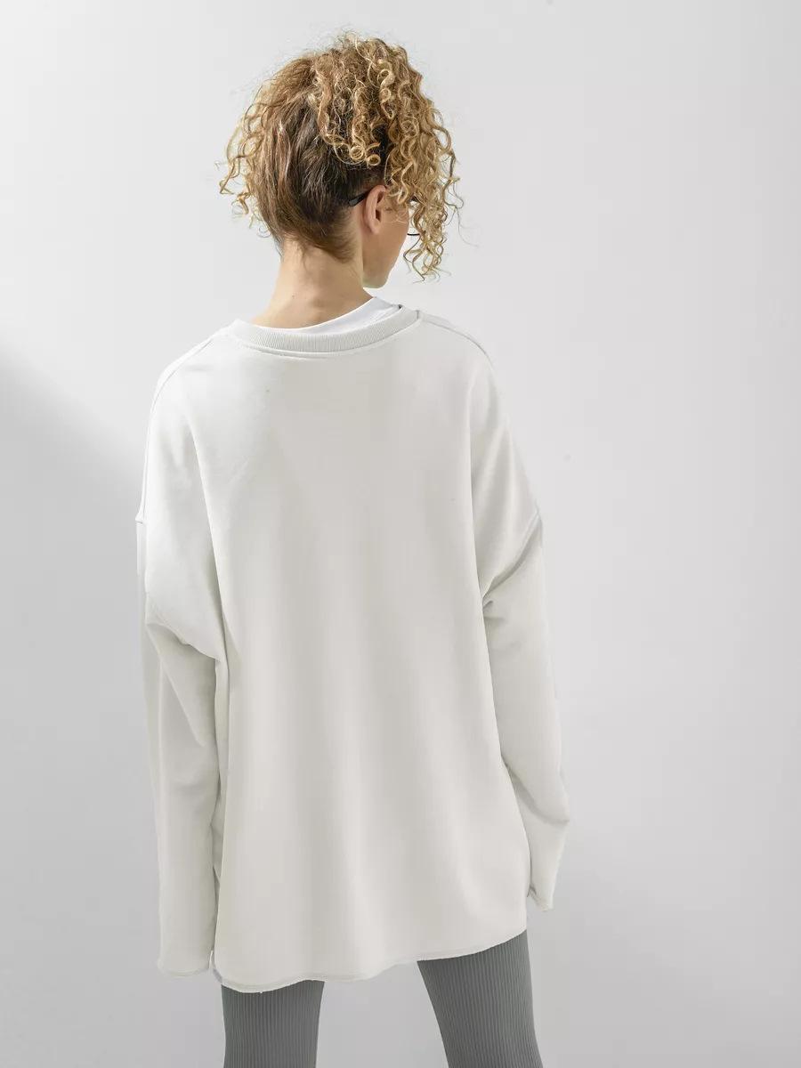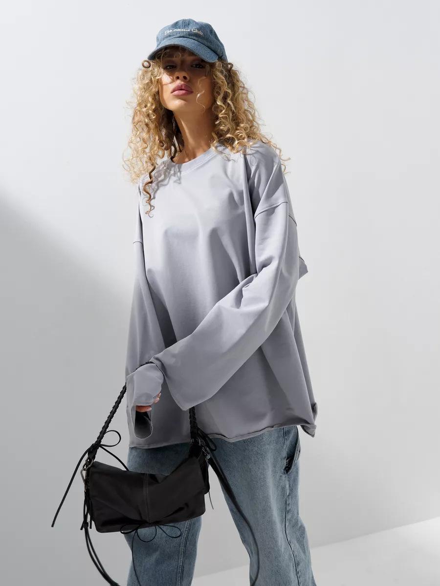 Europa e Estados Unidos transfronteiriça nova primavera e outono feminino solto cor sólida oversize gola redonda manga comprida casual camiseta moda suéter feminino